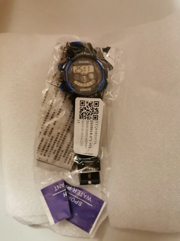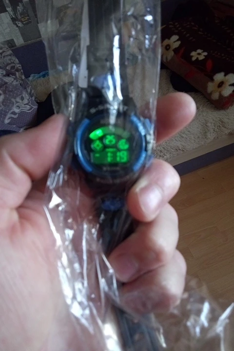 Годинник прийшов без пошкоджень, працює. Доставка в Україну 1 місяць . Показує час,день тижня (англійською),є дата, секундомір, будильник і підсвічування екрану(вмикається окремо кнопкою коли потрібно). Рекомендую!