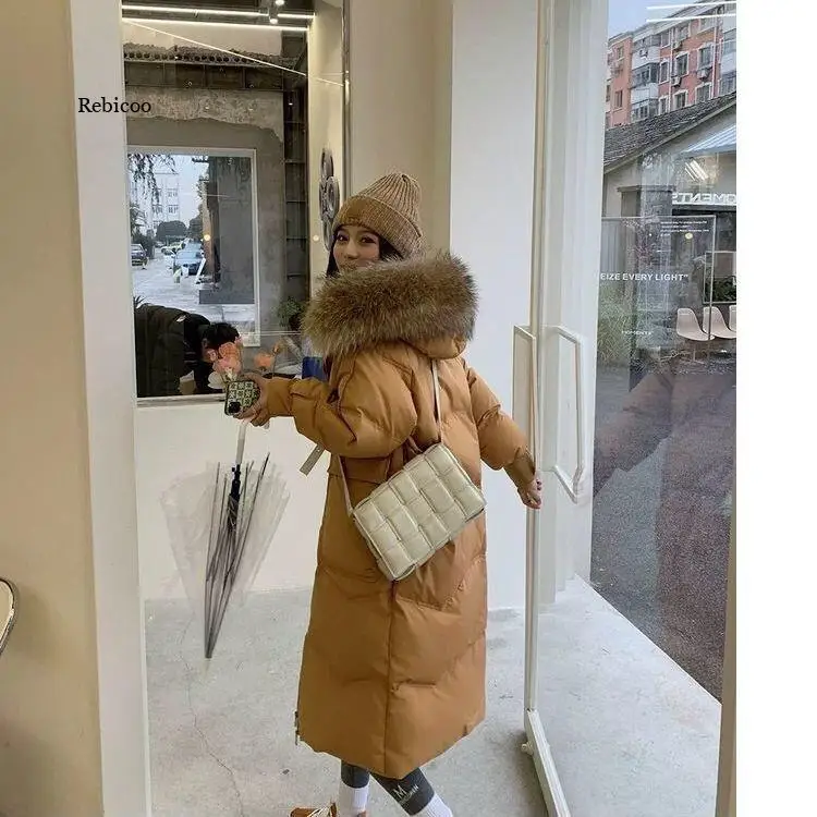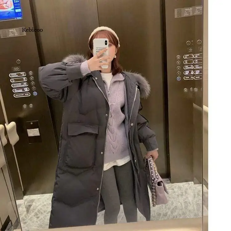 Женское пальто с воротником из лисьего меха, длинное теплое пальто ...