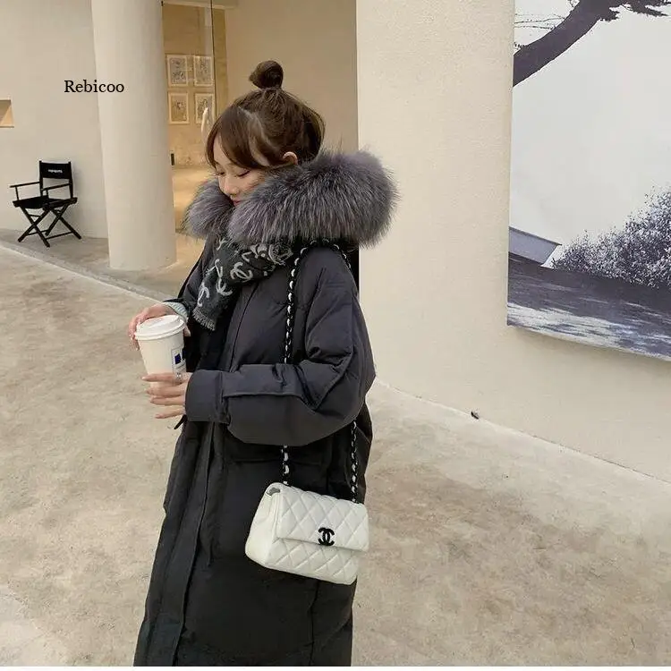 Осенне-зимнее теплое пальто с большим меховым воротником, одежда с ...