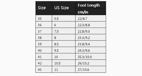 Длина стопы (см/дюйм)::22,3/8,8