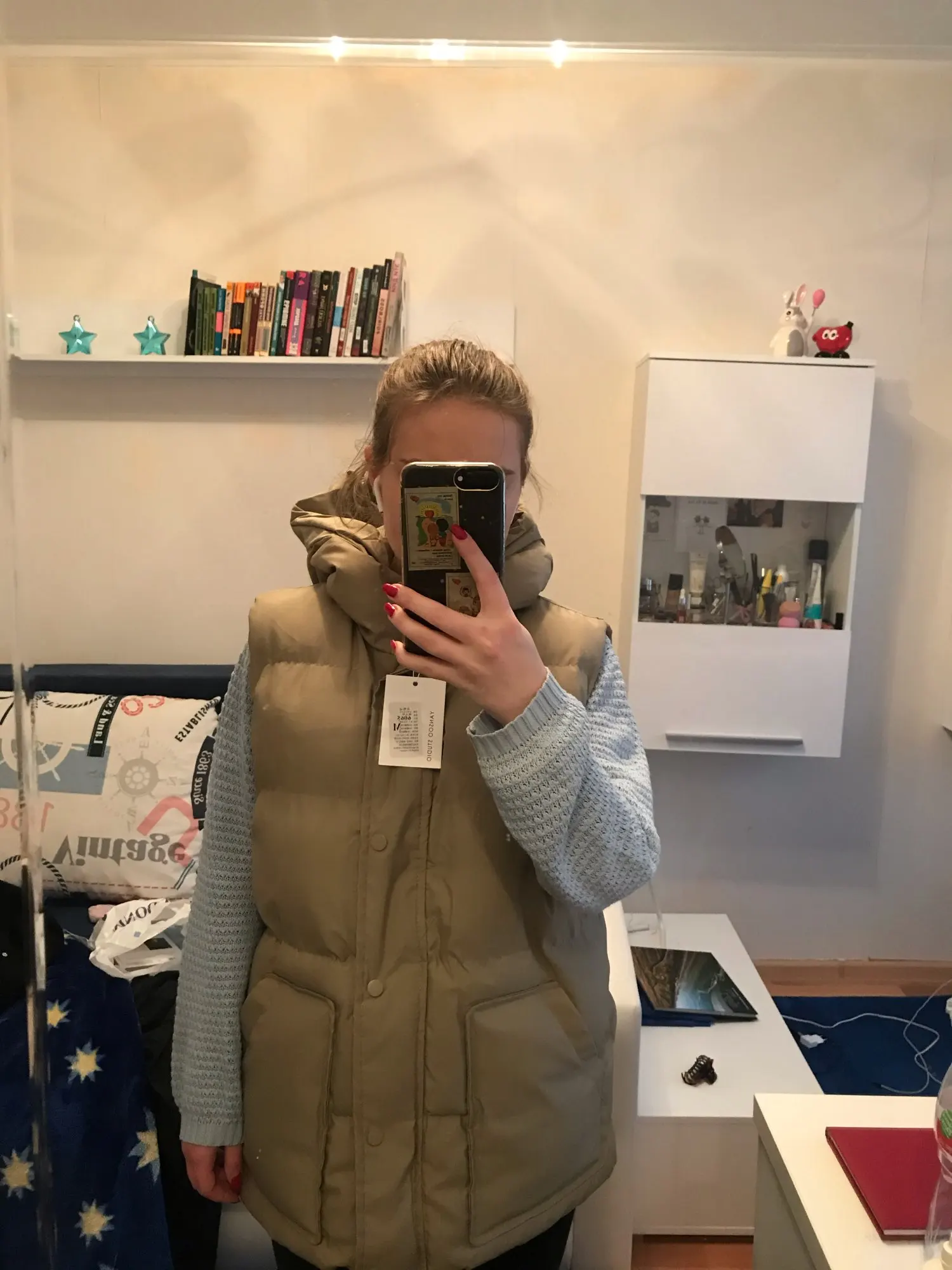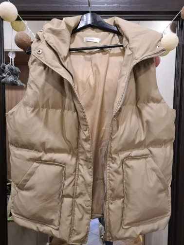 Жилетка отличного качества. Долго ждала, пока появится в наличии черный оттенок, но не дождалась и заказала бежевый. К покупке советую. Размер конечно большеват, но сейчас модно оверсайз, так что, то что надо.