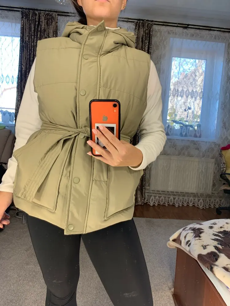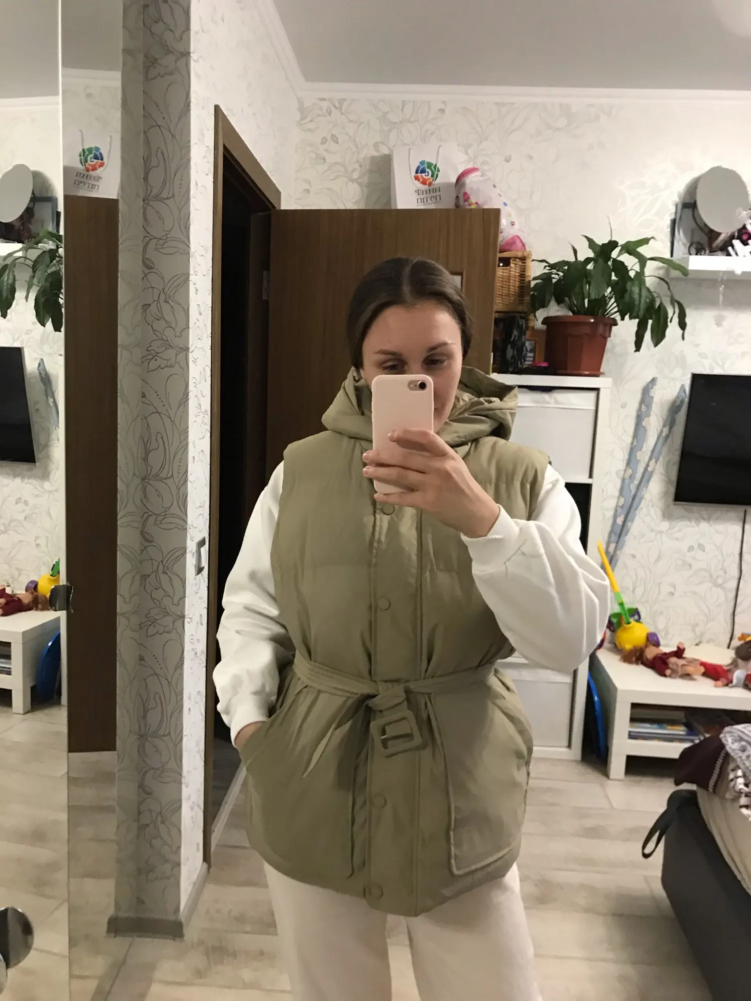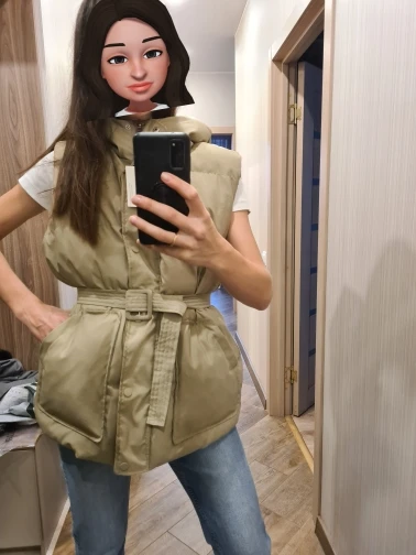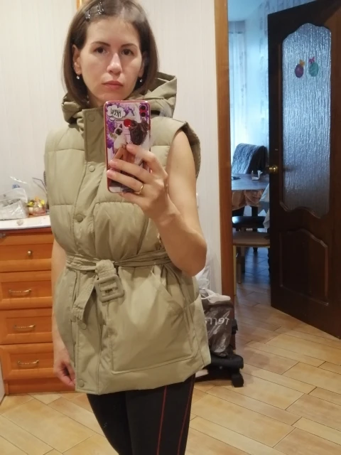 Жилетка классная. Оказалась немного велика,но с поясом смотрится Хорошо