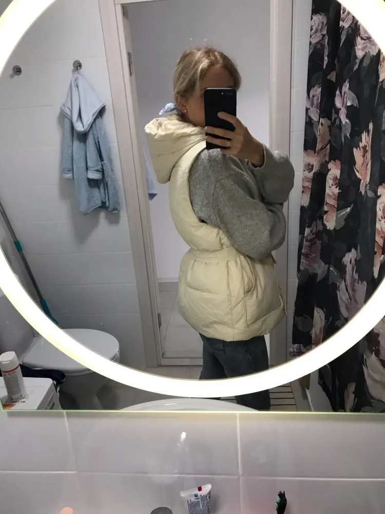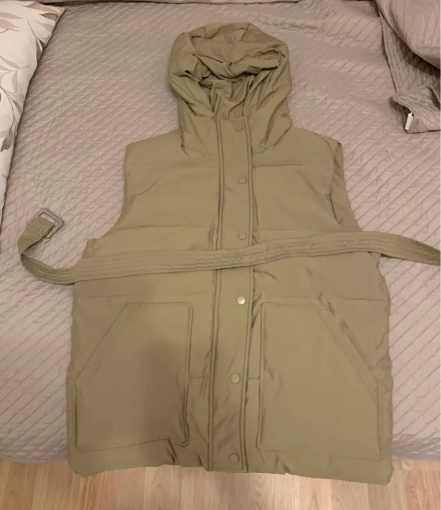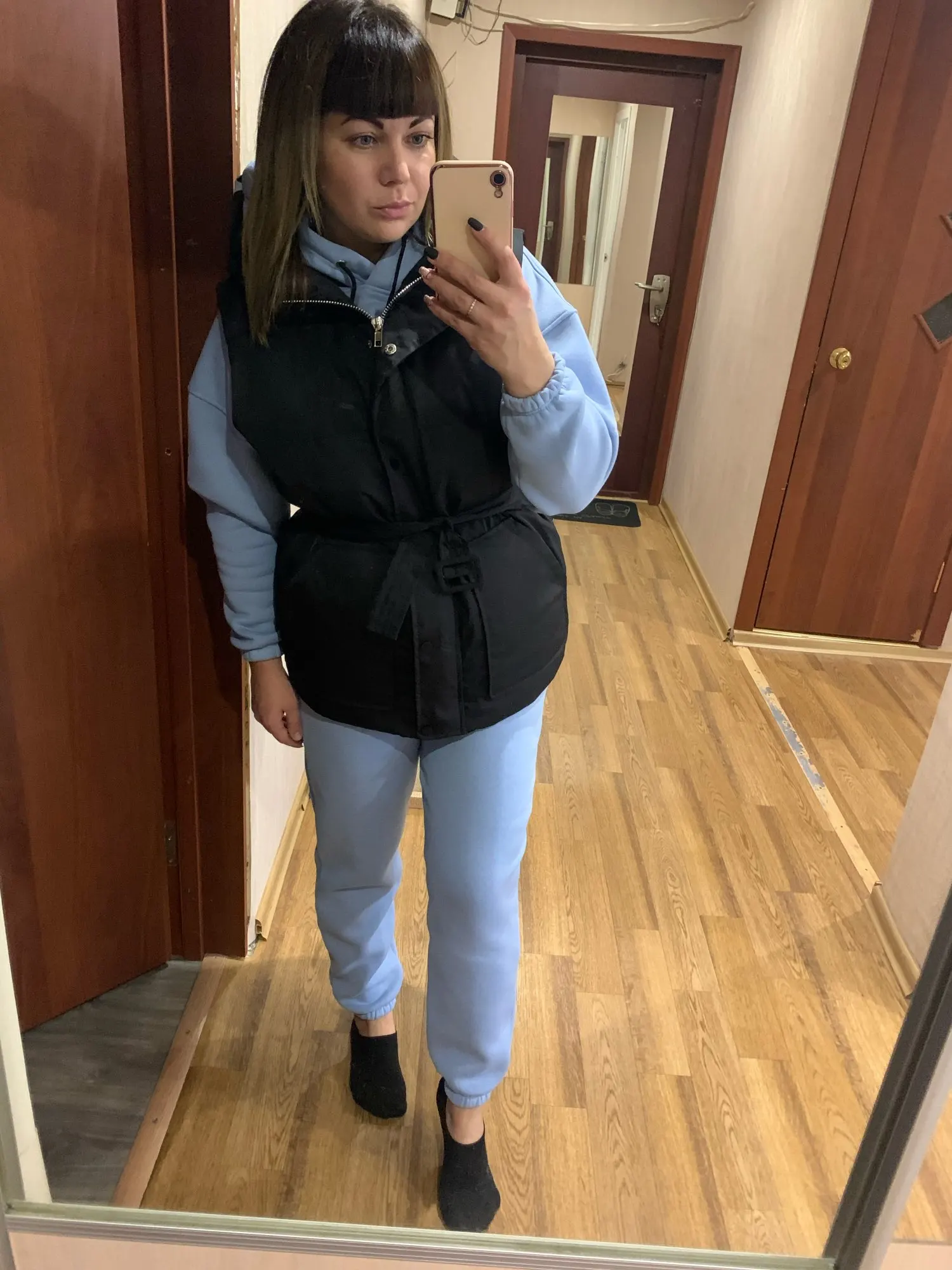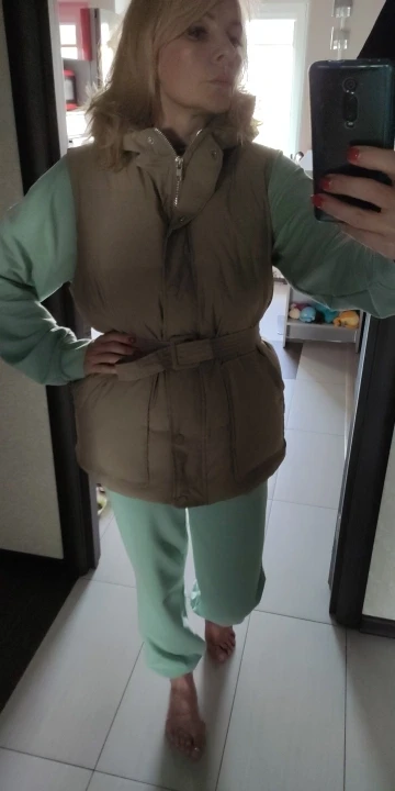 Сама по себе жилетка неплохая но размер ,я ношу размер С ,она похожа на размер ,эль как будто я одела жилетку своего папы ,и на самом деле она не очень дутая, местами где швы, просто ткань, мне пришел без пояса, ну это очень редкий случай по отзывам)