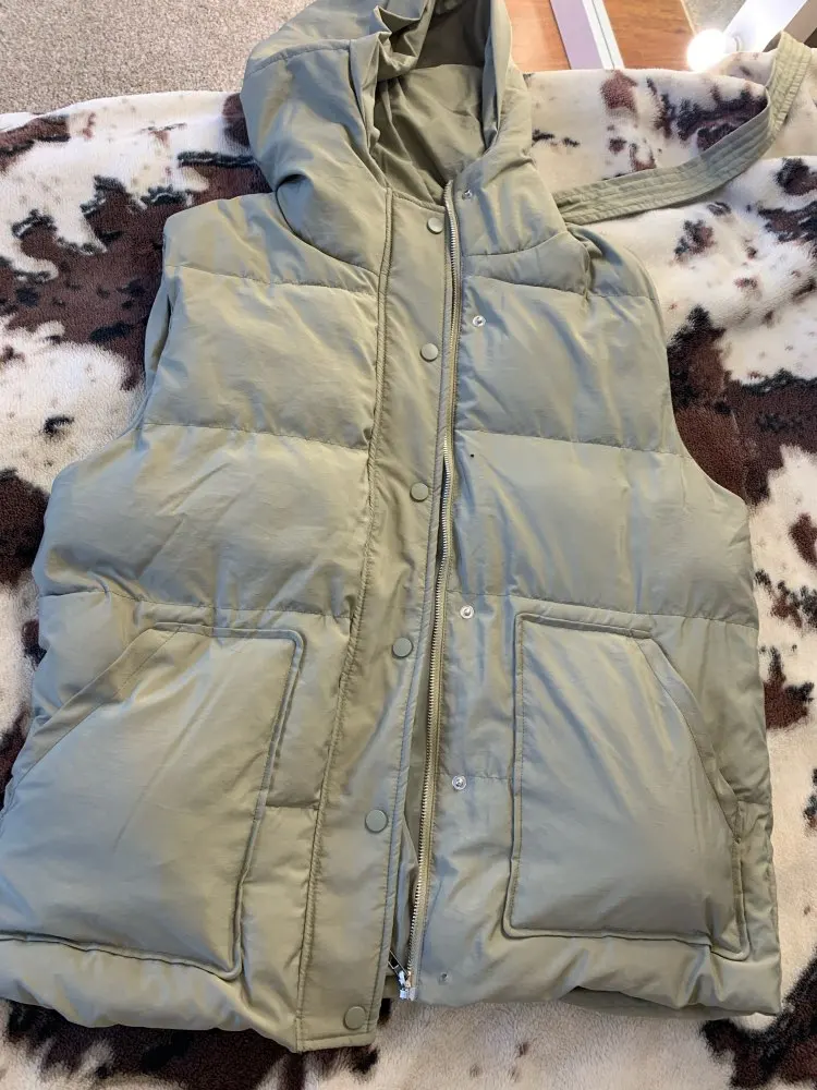 Хорошая жилетка, единственное хотелось бы чтоб пояс затягивался, не держиться вообще, нужно только завязывать.
