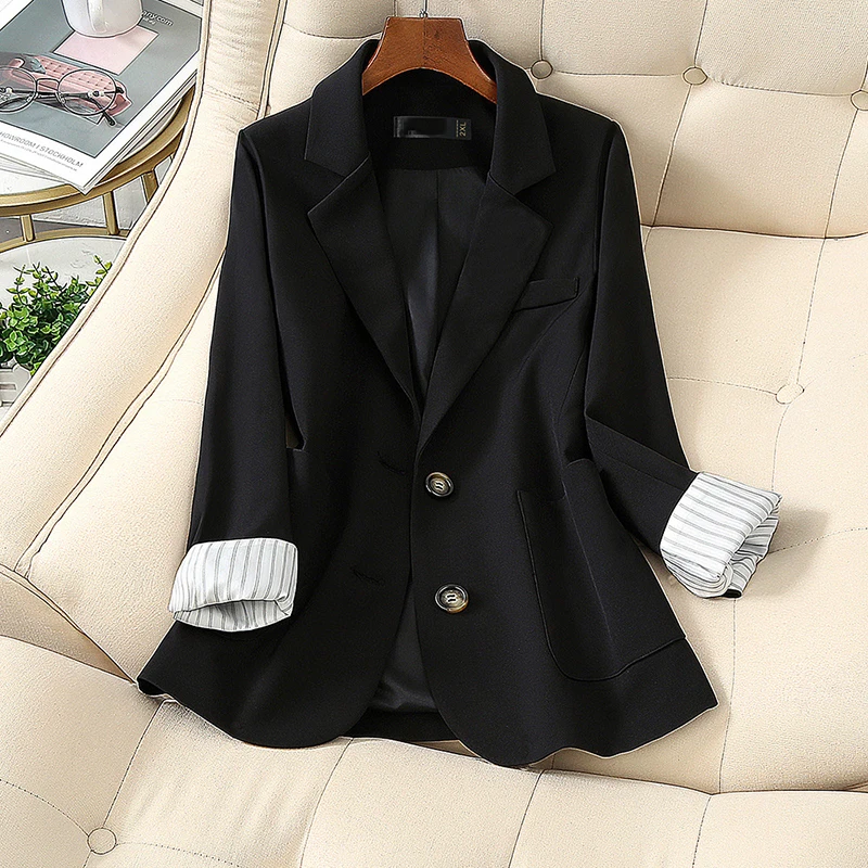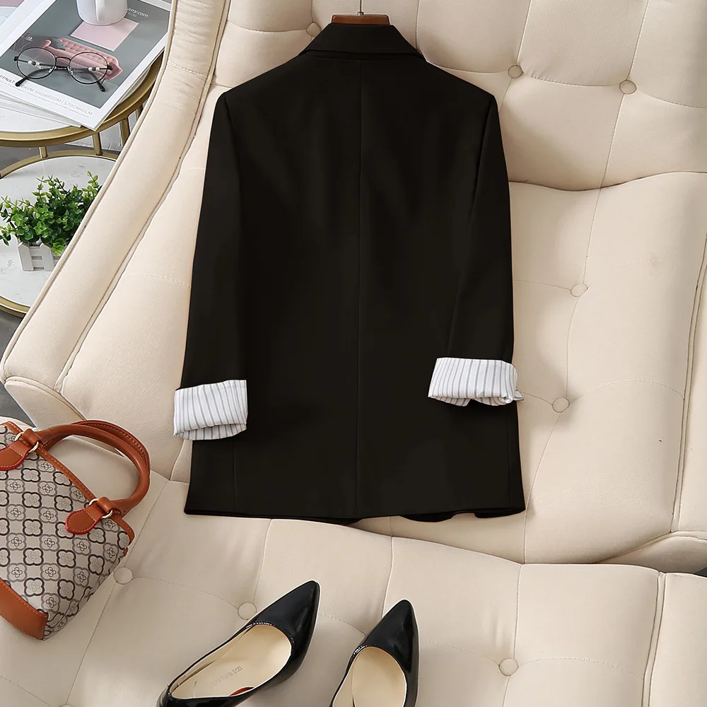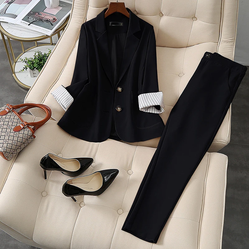 Женский офисный комплект из 2 предметов, однотонный черный элегантный однобортный костюм-карандаш и брюки до щиколотки