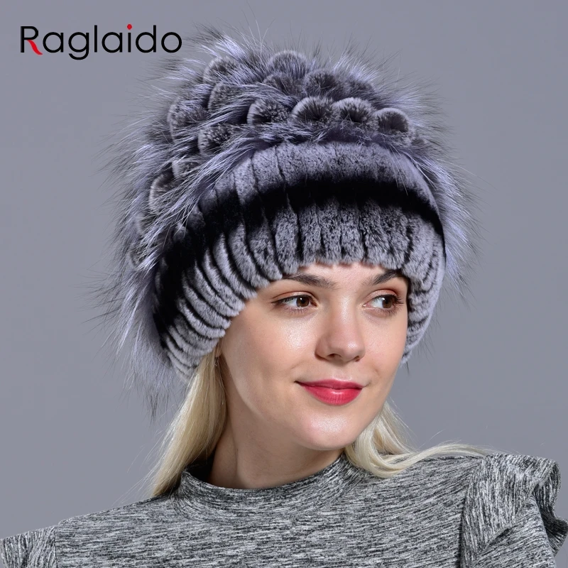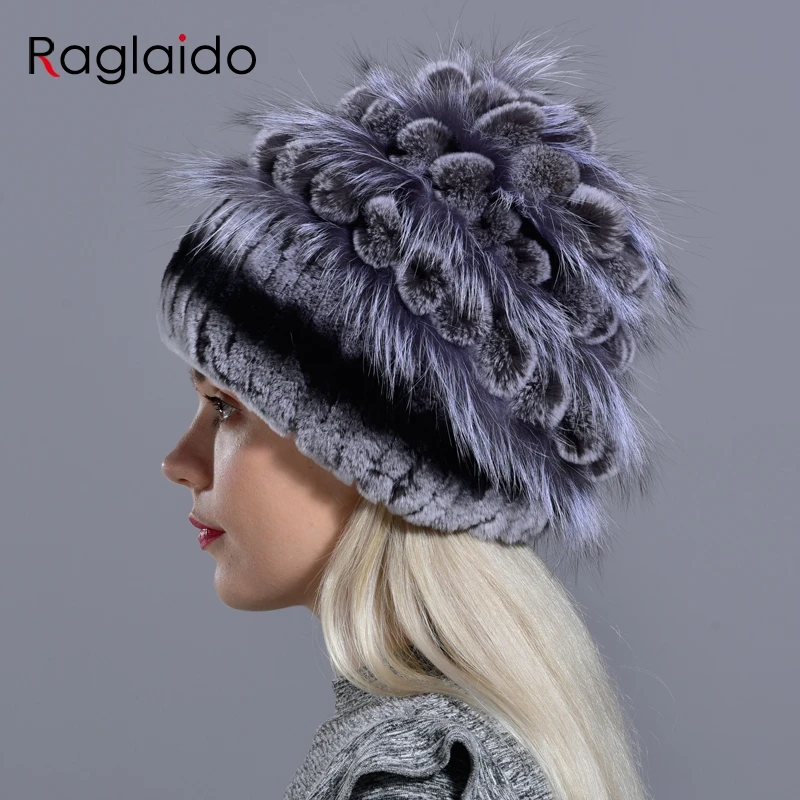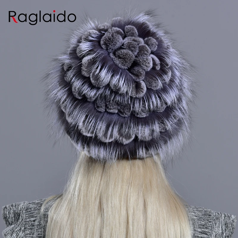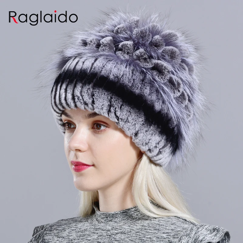 Шапка из натурального меха для женщин, зимняя вязаная, с цветами