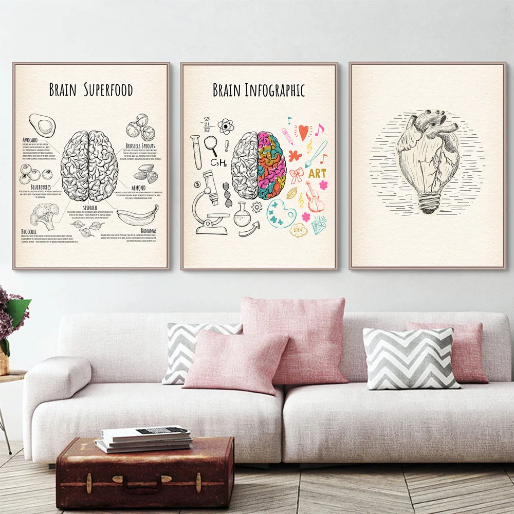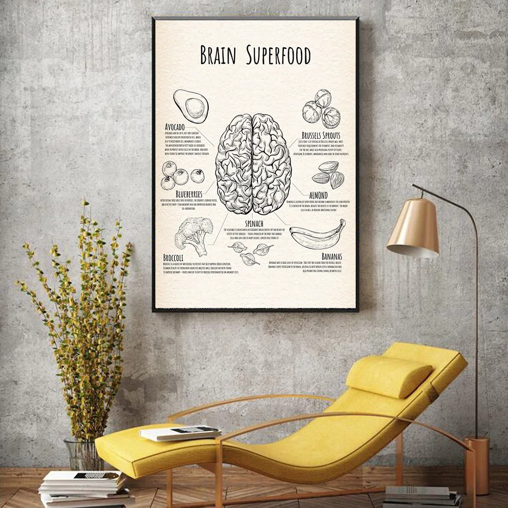 Информация графические плакаты с изображением лучшей еды мозга супер еды в скандинавском стиле художественные настенные картины на холсте настенные картины для декора гостиной