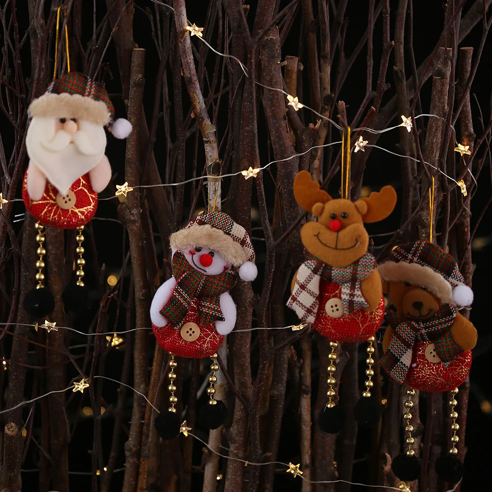 Рождественские украшения для дома, клетчатая ткань, кукла Санта-Клаус, подвесные украшения, гирлянда, подвески, украшения для рождественской елки, Q