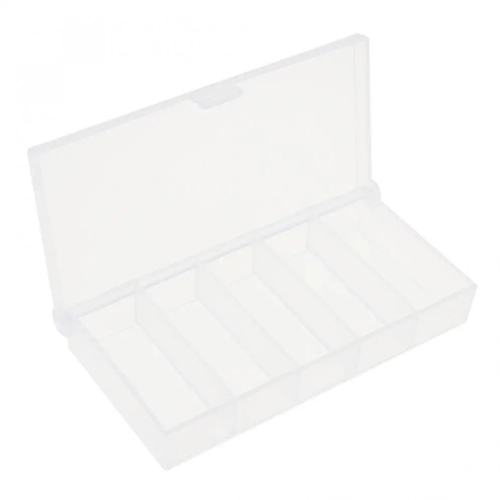 Особенности:-Пищевой ПП Материал принимается, экологически чистый, здоровый и прочный.-Изготовлен из прозрачного материала, легко увидеть, что находится в коробке.-Маленький и легкий светильник.-Он имеет пять небольших квадратов для легкой сортировки и хранения.