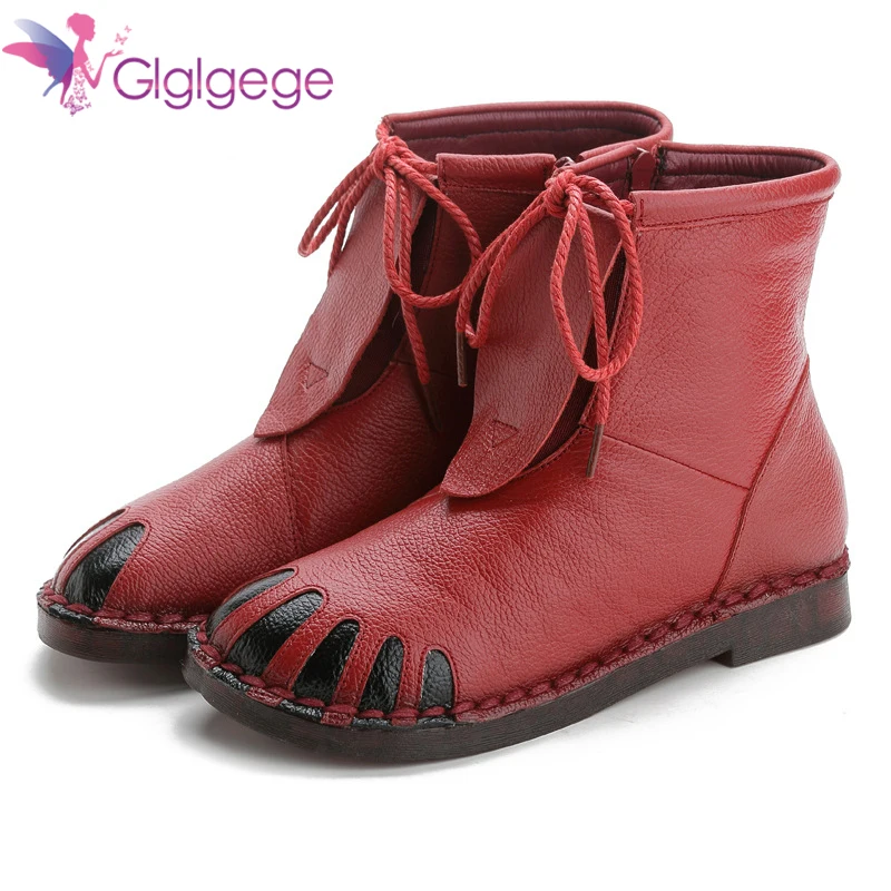 Женские ботинки ручной работы OUKAHUI, винтажные мягкие ботильоны и...