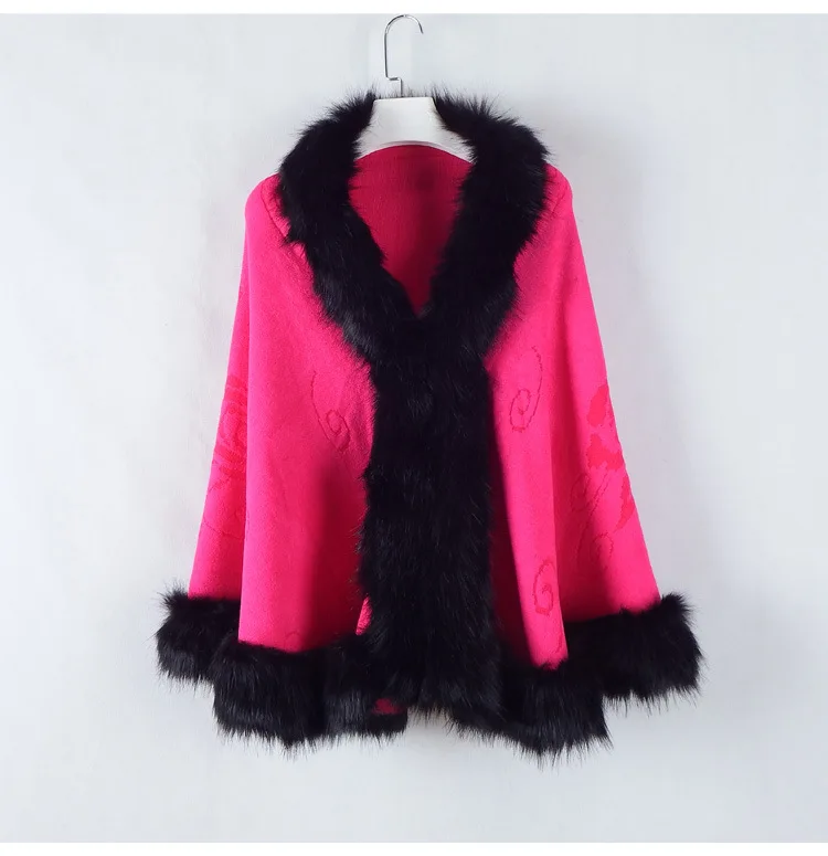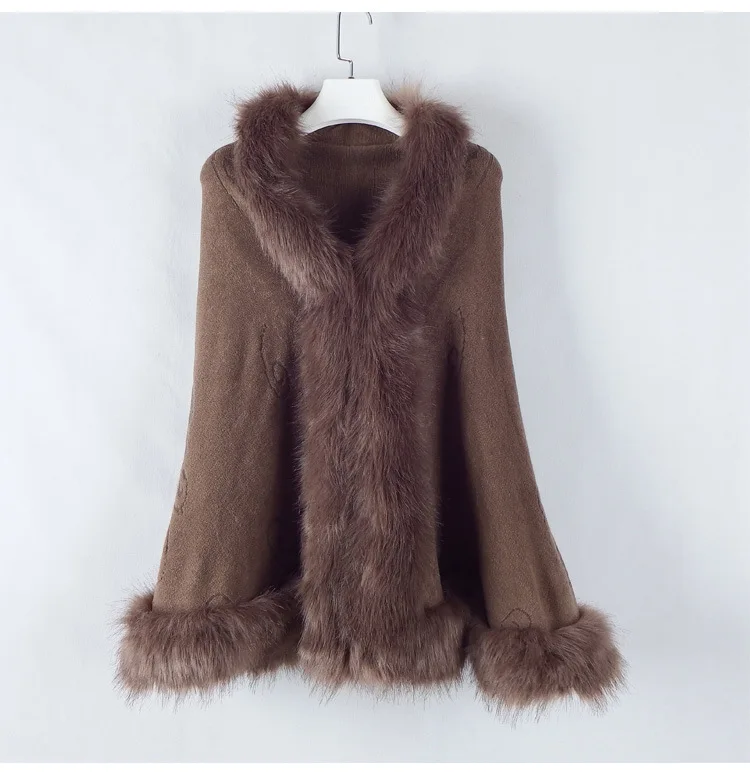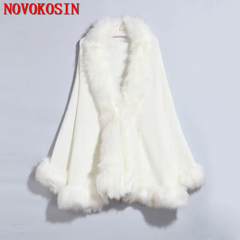 Женское пончо SC371, белое длинное трикотажное пальто, 13 цветов, с длинными рукавами, 2019 образец, большой воротник из искусственного лисьего меха