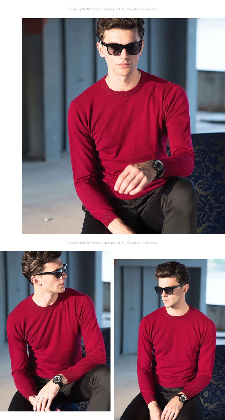 Новинка 2021 от известного бренда, мужской свитер из 100% шерсти, мужская модель мериносов с длинным рукавом, модный мужской пуловер с круглым вырезом, вязаный