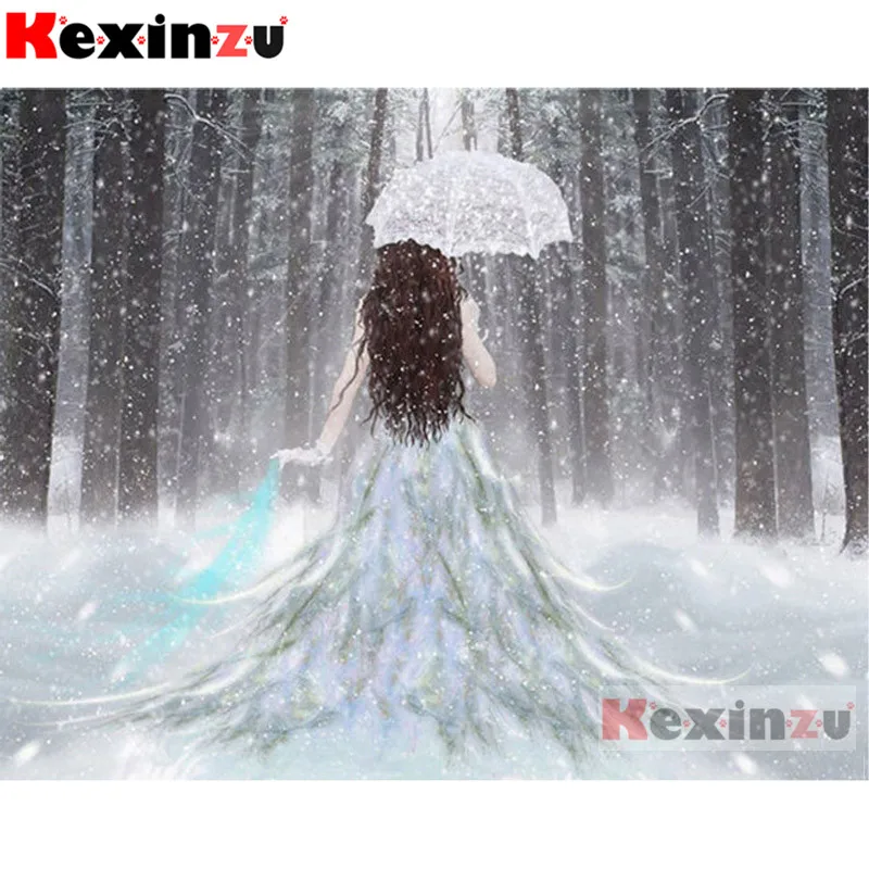 Kexinzu 5D DIY камни в форме ромбаНабор для рисования с круглыми камнями и полотном живопись "Лес женщина" 3D вышивка вышитая крестом ручная работа работы домашнего декора @ X66699