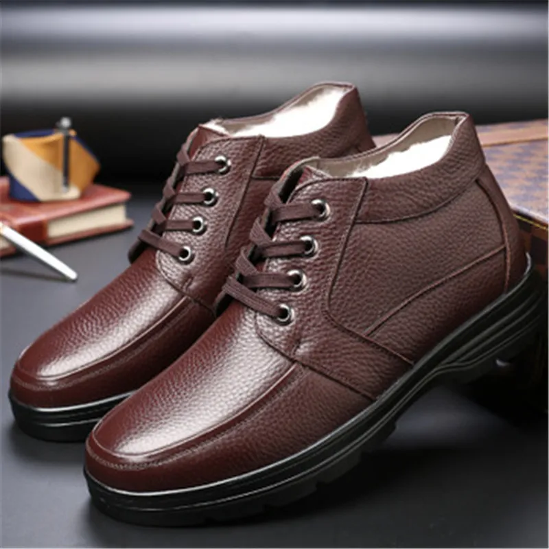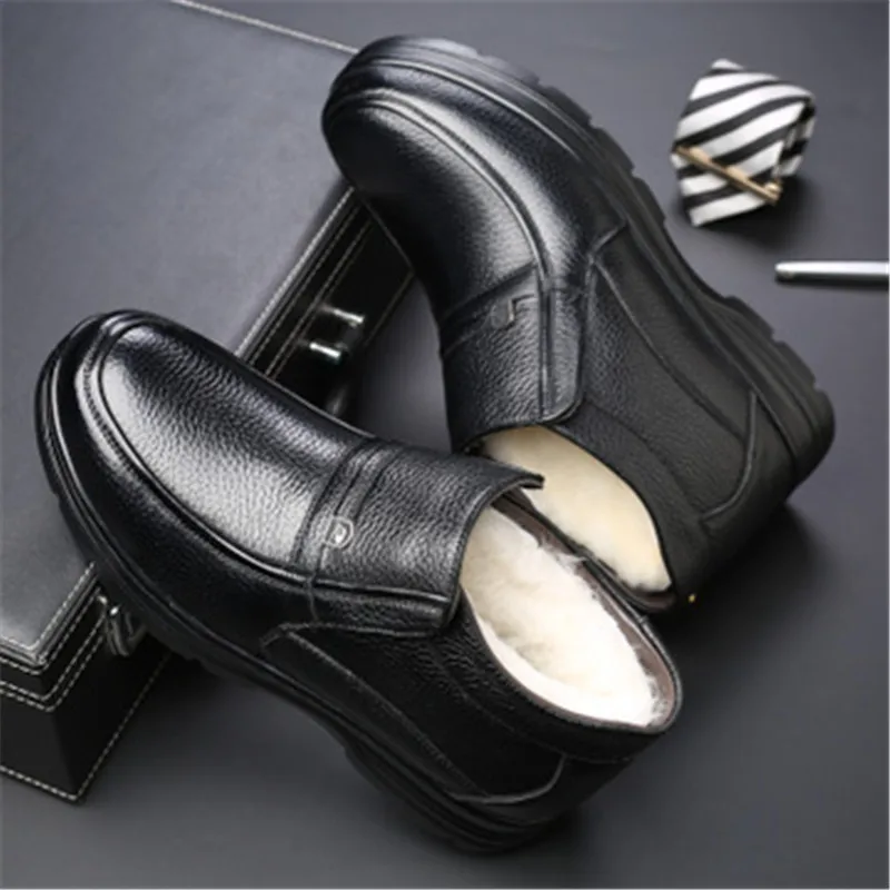 Ботинки мужские зимние из натуральной воловьей кожи, водонепроницаемые, теплые, размер 38-48, Мужская обувь для бизнеса