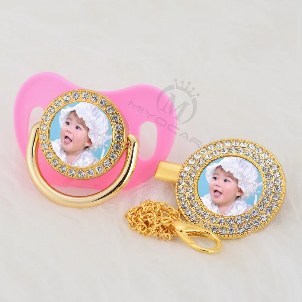 Золотая Соска-пустышка миокар с фотографией имени под заказ, без бисфенола А
