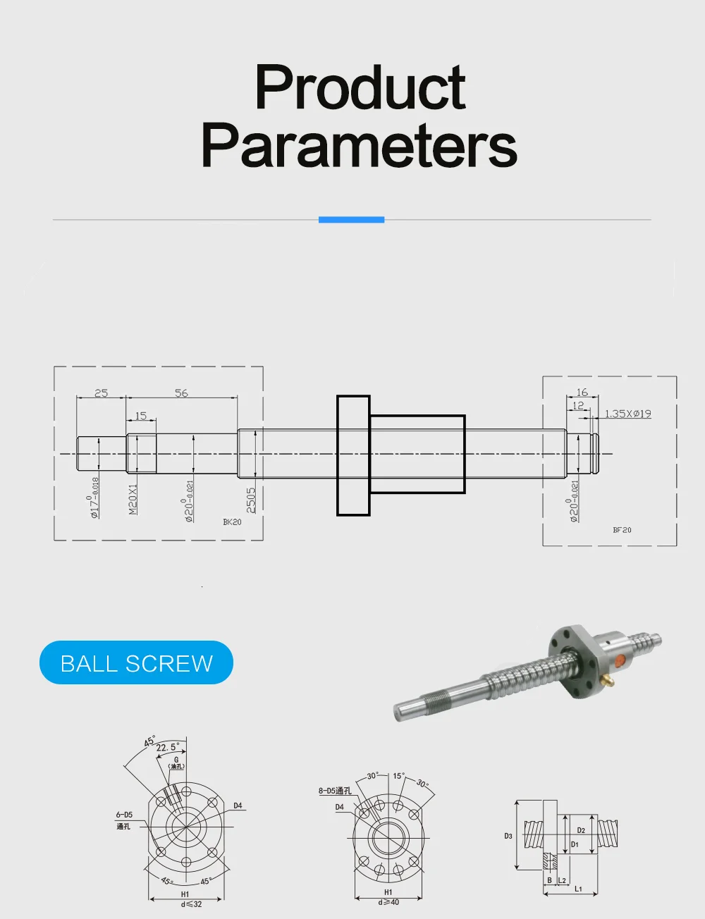 Шариковый винт RM2505 SFU2505 200 - 2550 мм 25 мм, шариковый винт C7 с фланцем 2505 2510, одинарнаядвойная гайка BKBF20, Концевая обработка для ЧПУ