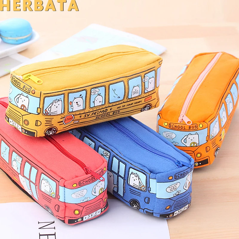 Корейский Канцелярские товары для творчества студентов маленькие животные автобус ручка сумка автобус пенал для карандашей для мужчин и женщин холщовый пенал CL-19166