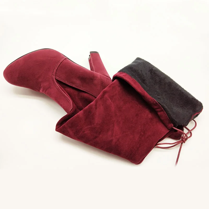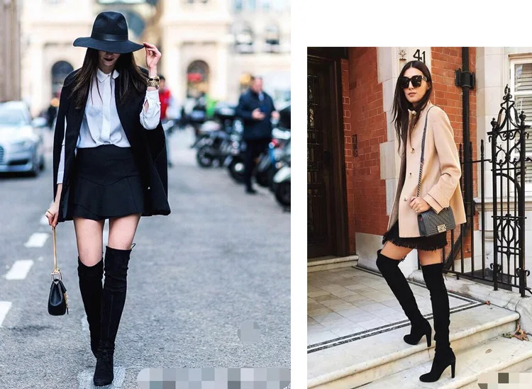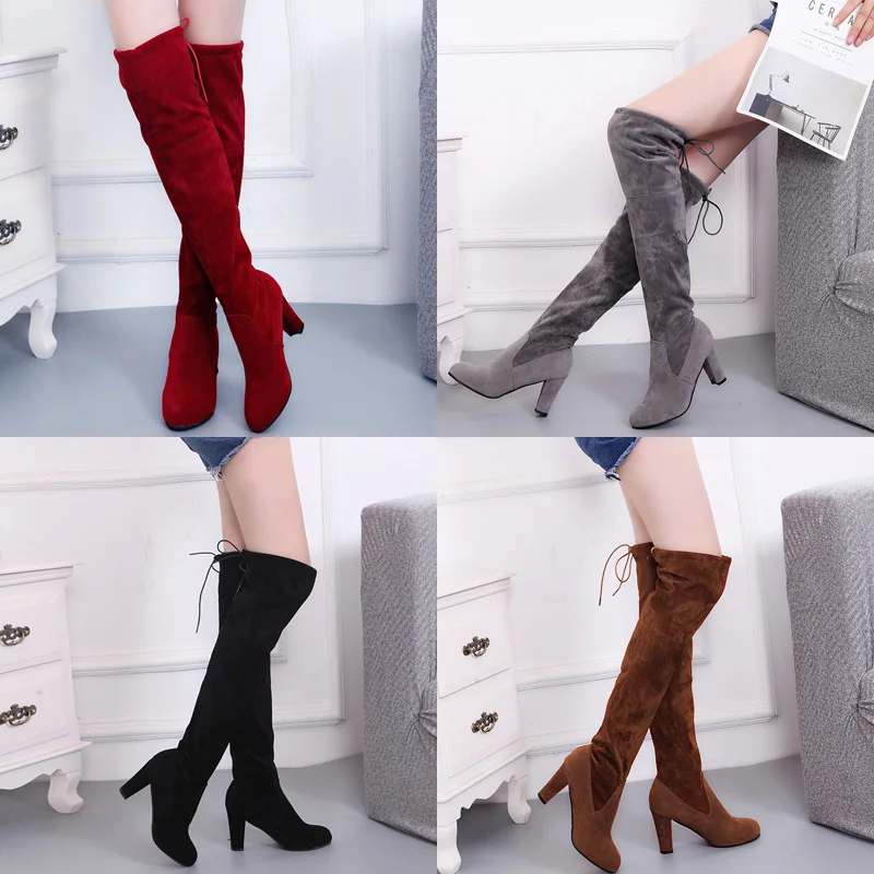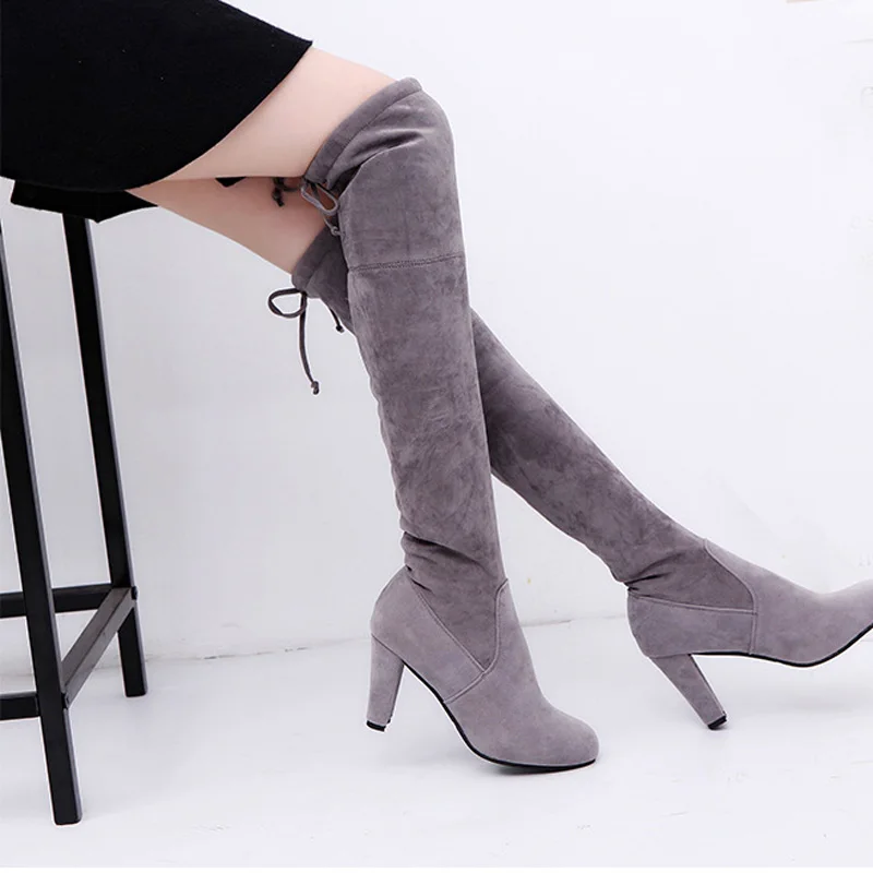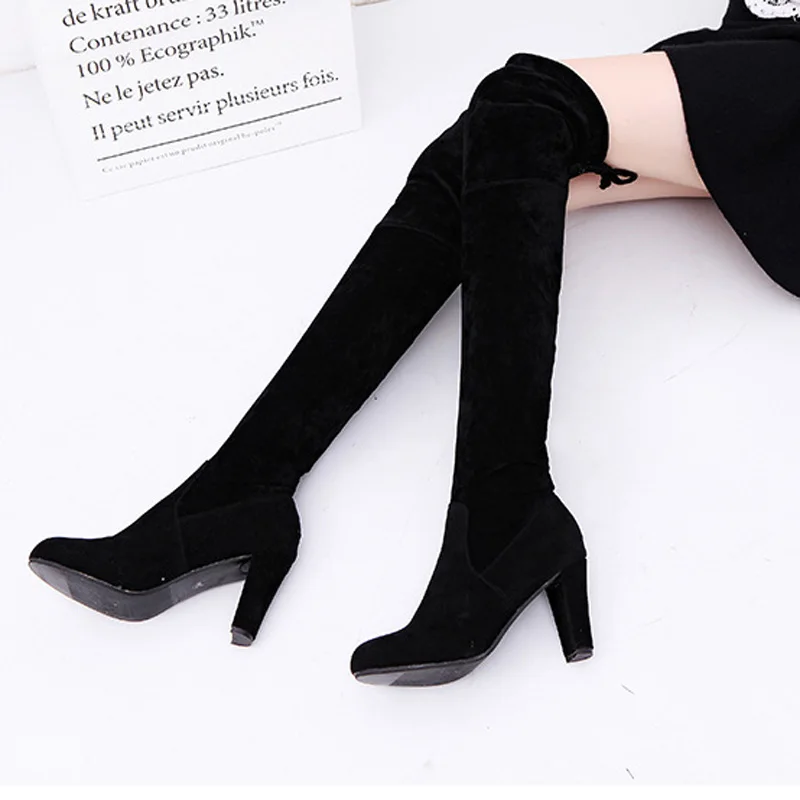 Облегающие сапоги выше колена из искусственной замши, зимние женские сапоги, сексуальные сапоги до бедра, женская обувь на высоком каблуке, женская обувь большого размера 43 WSH3443