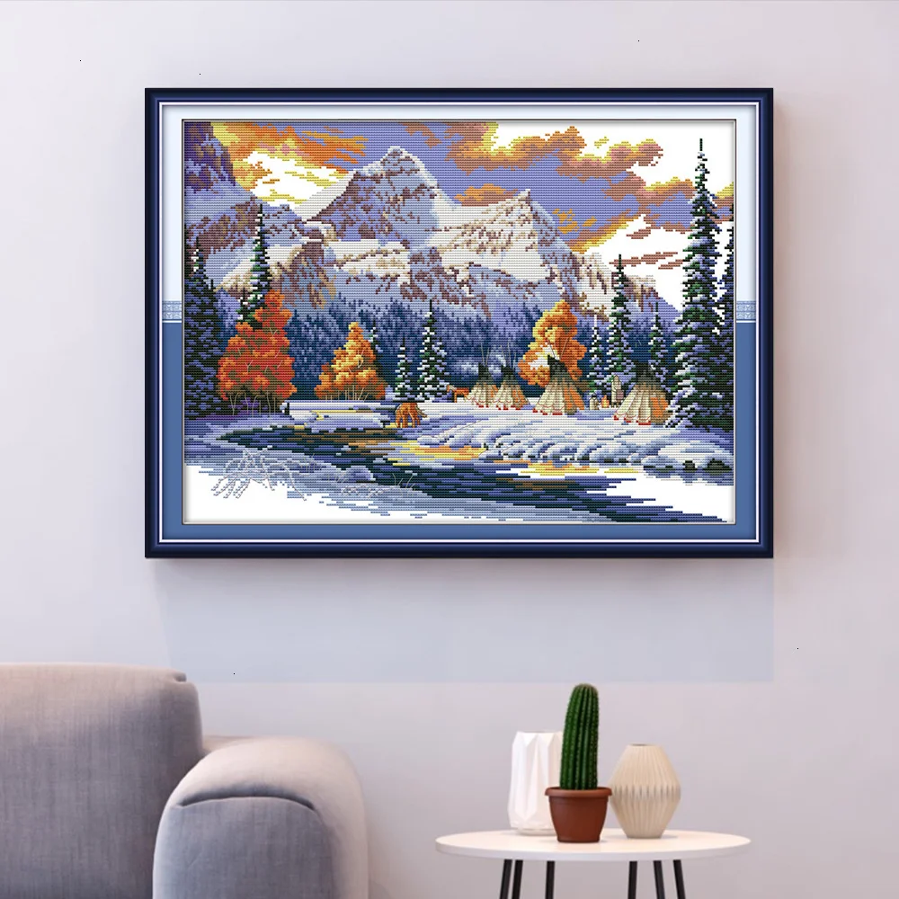 HUACAN вышивка крестиком зимний пейзаж хлопок нить живопись DIY рук...