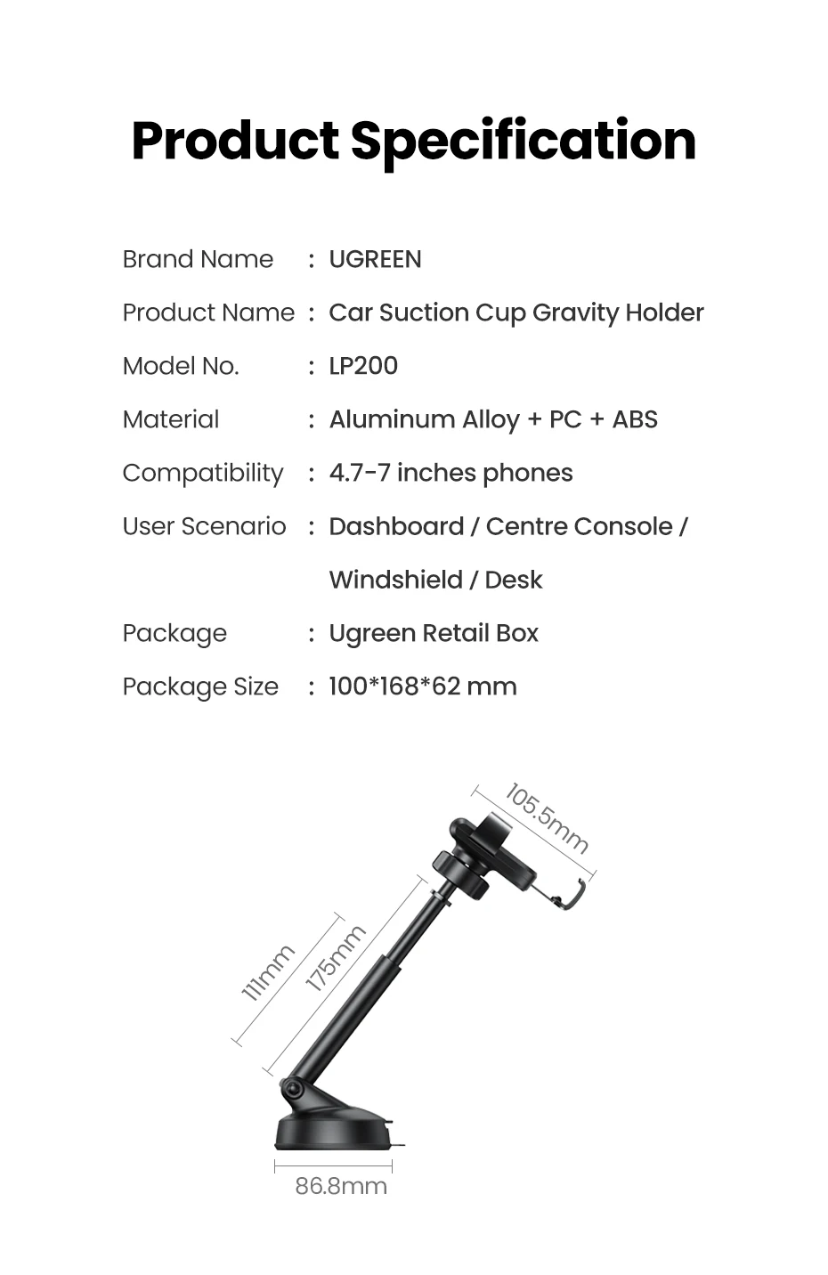 UGREEN Автомобильный держатель для телефона, гравитационная Автомобильная присоска, подставка для телефона, мобильный телефон для iPhone 13 12 Xiaomi Redmi Samsung Huawei
