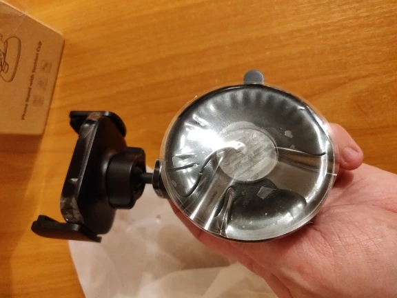 Годная штука. Присоска покрыта еще каким-то клеевым составом и прихватывается к стеклу "намертво". Пружина в зажиме очень сильная - телефон держится крепко, но вставлять и вытаскивать его тяжело.