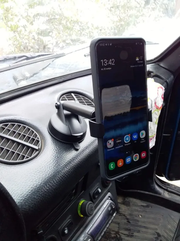 Держатель отличный, присоска вообще монстр присосалась хрен оторвешь) брал на подарок, подарок понравился) смартфон ксяоми (сорян если не правильно написал) редми нот 8 про вошёл как литой) дошёл до Челябинска меньше чем за месяц. Рекомендую такой держатель. Покупал первый вариант, самый дорогой. Плюс продавец положил подарок в виде верёвки для крепления проводов)