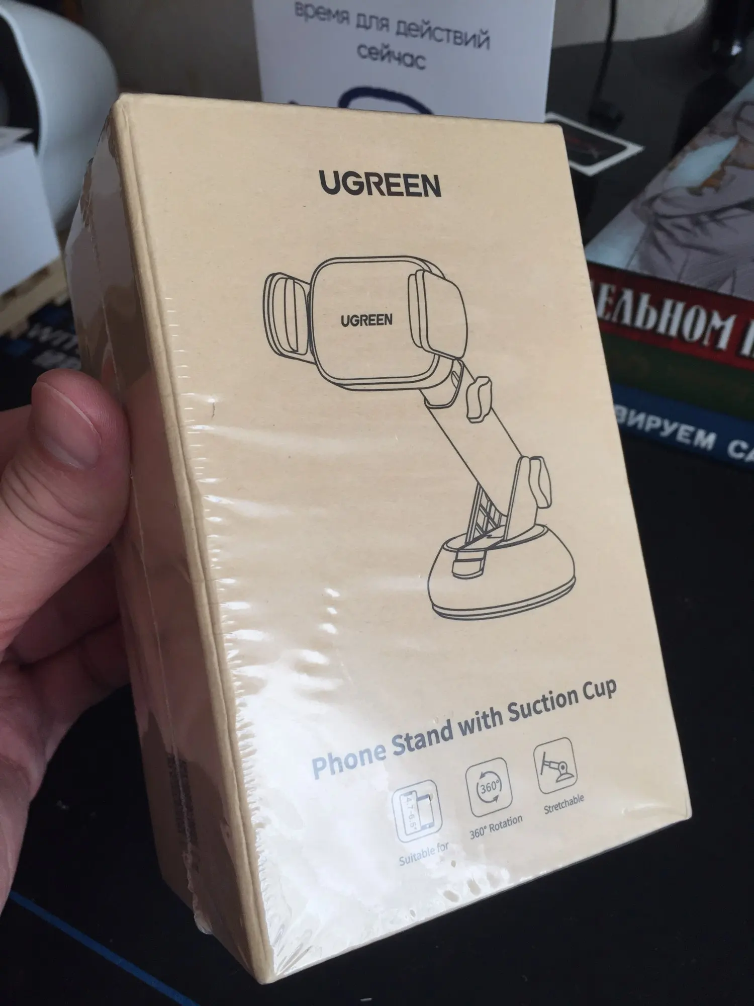 Очень хороший автодержатель. Упаковка хорошая, как с наружи, так и внутри. Продавец положил подарочек. Фурнитура металлическая. Присоска "зверь". Советую крепить её на машину, которой Вы пользуетесь постоянно. Отодрать очень трудно. Телефон Xiaomi mi 9t в карбоновой чехле влез как влитой. Крепление самого телефона надёжное. Пришёл достаточно быстро, 20 дней. Товары фирмы Ugreen заказываю не первый раз. К покупке рекомендую.