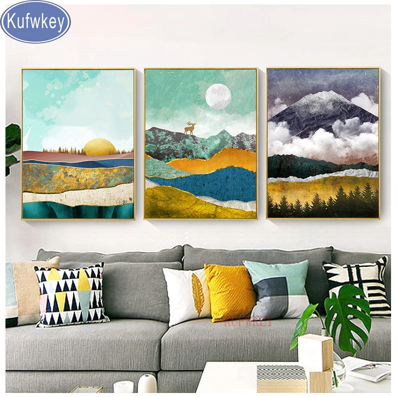 5d Diy Daimond картина абстрактная настенная живопись Горный пейзаж Стразы квадратная круглая Алмазная вышивка KUFWKEY 3 шт