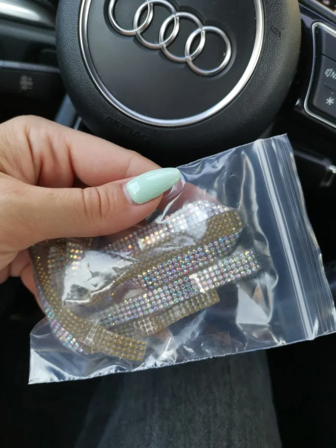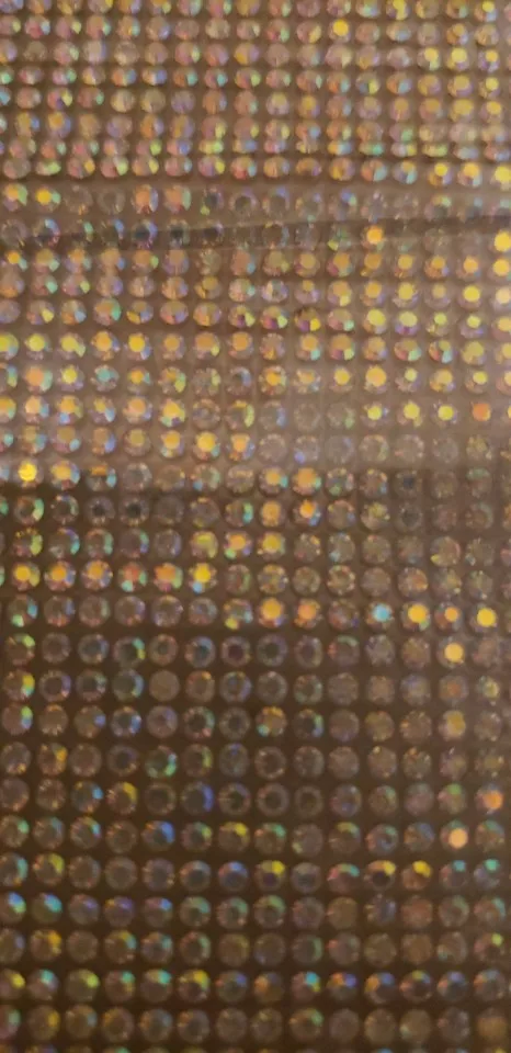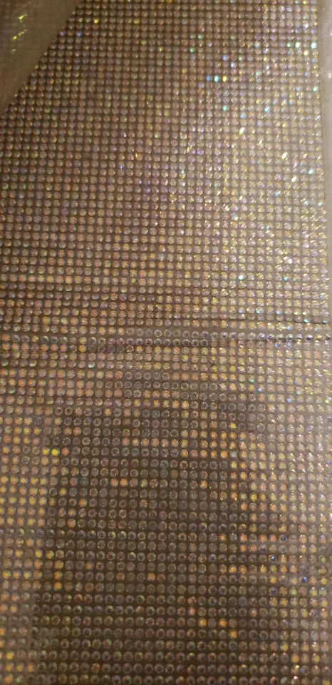 Пришёл заказ быстро, есть дефекты (отсутствуют стразины, но для моей задумки это не критично), а вот клеится плохо и это минус, только горячая фиксация (буду применять двухсторонний бесцветный скотч), блестит конечно шикарно, но нужно дополнить, что липкого слоя нет. В целом я довольна. Продавцу спасибо, хоть я с ним и не общалась