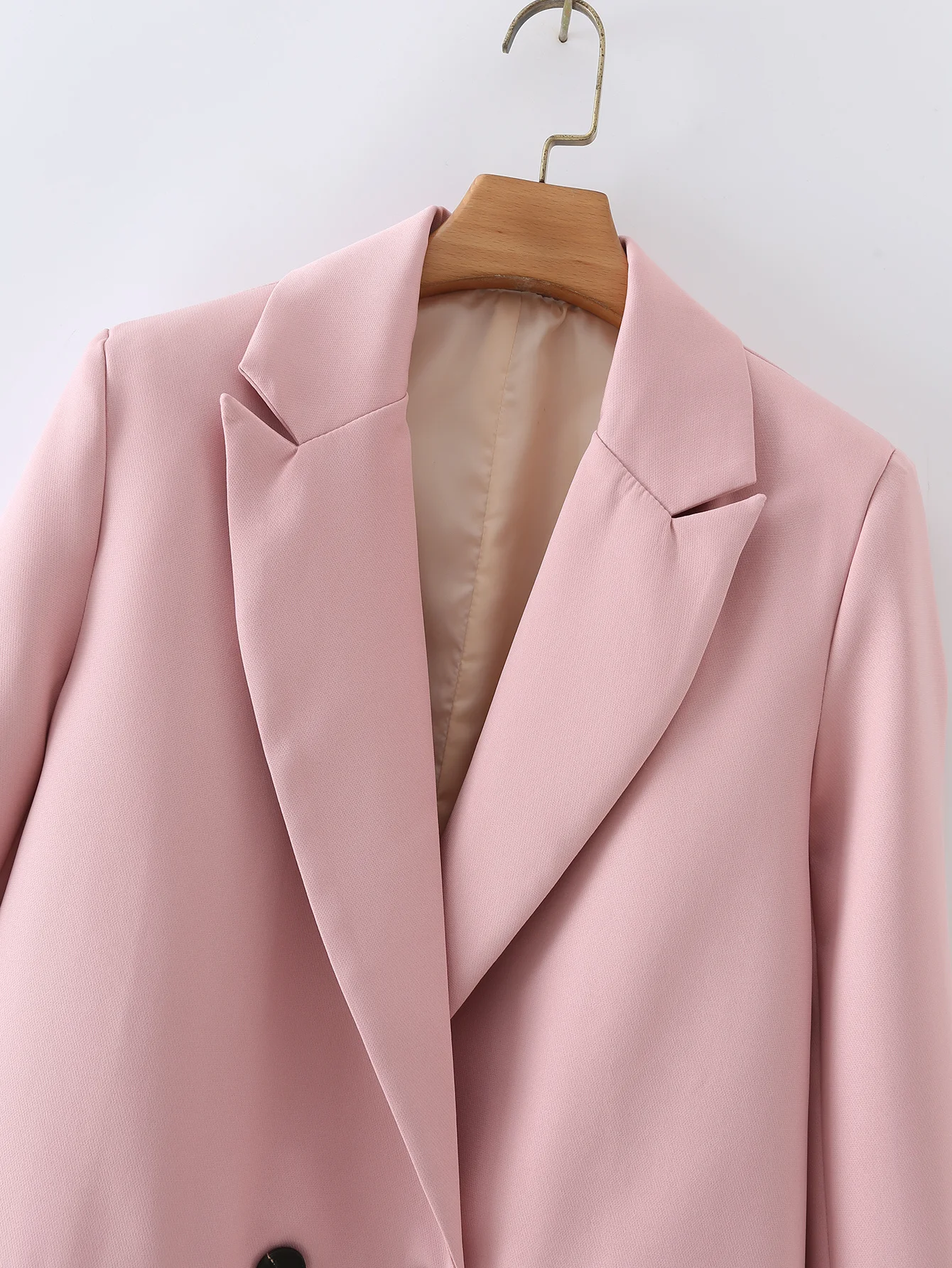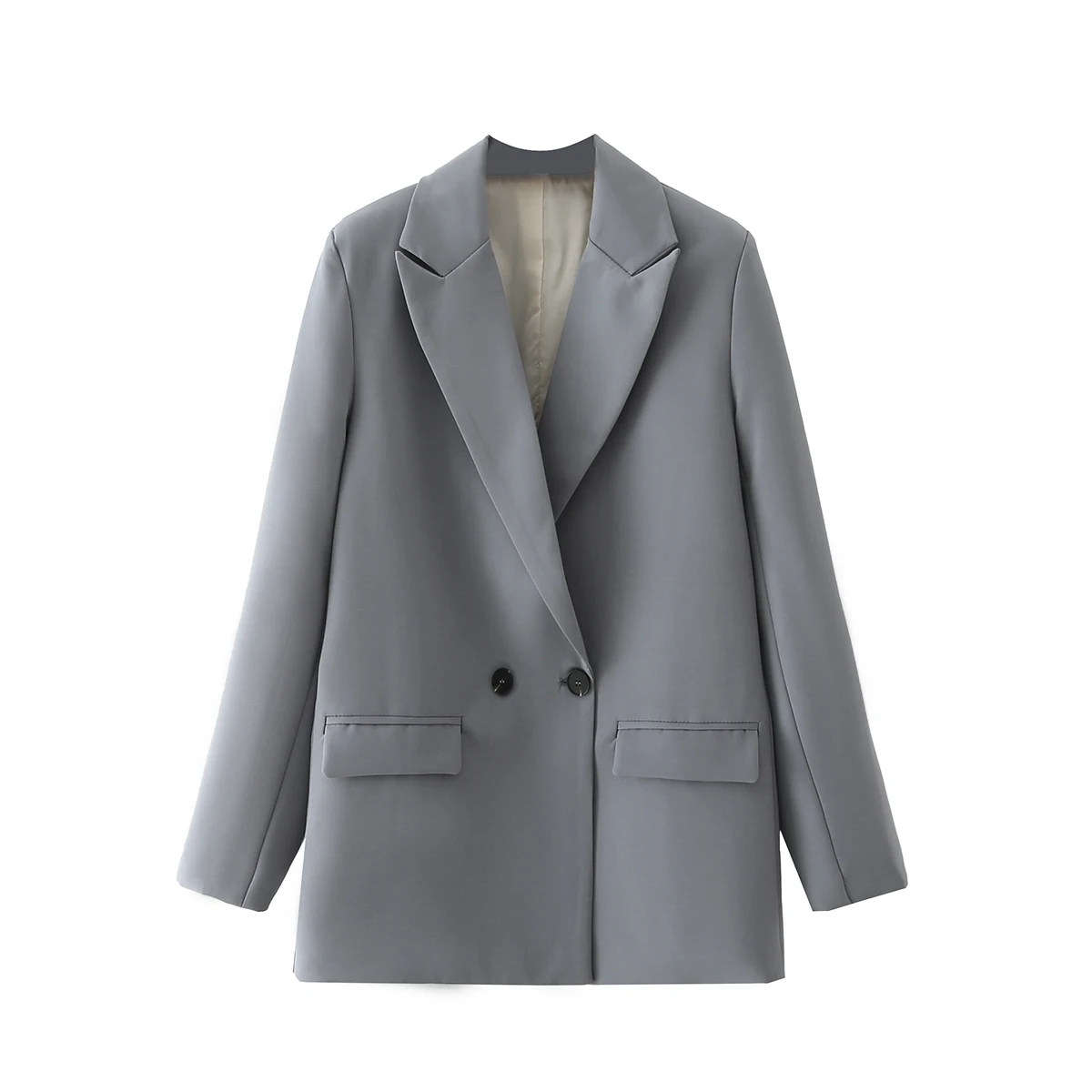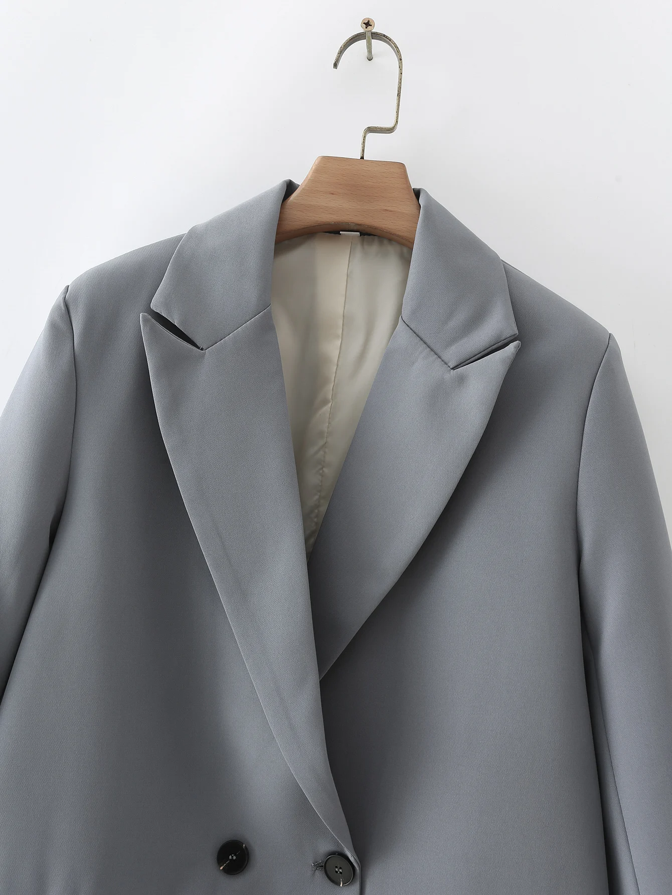 Женский блейзер на осень и зиму, повседневное однотонное двубортное декоративное пальто с карманами