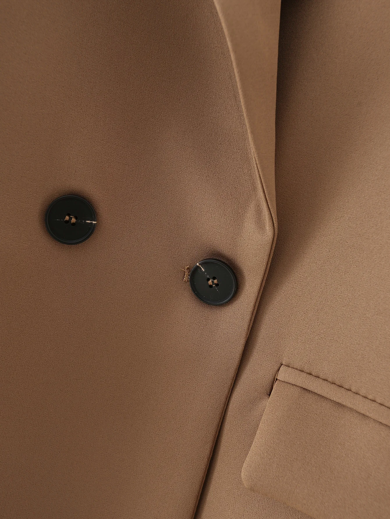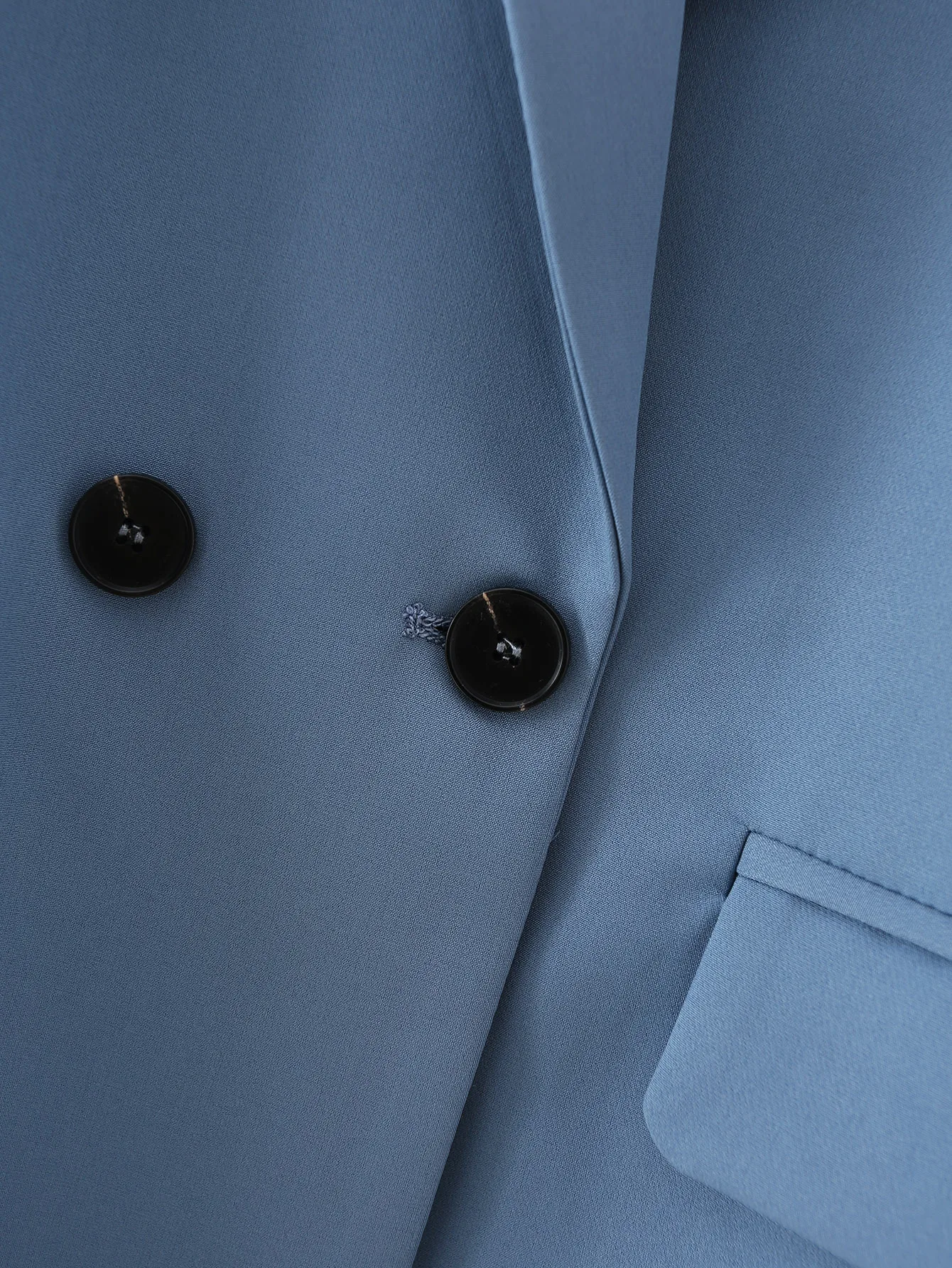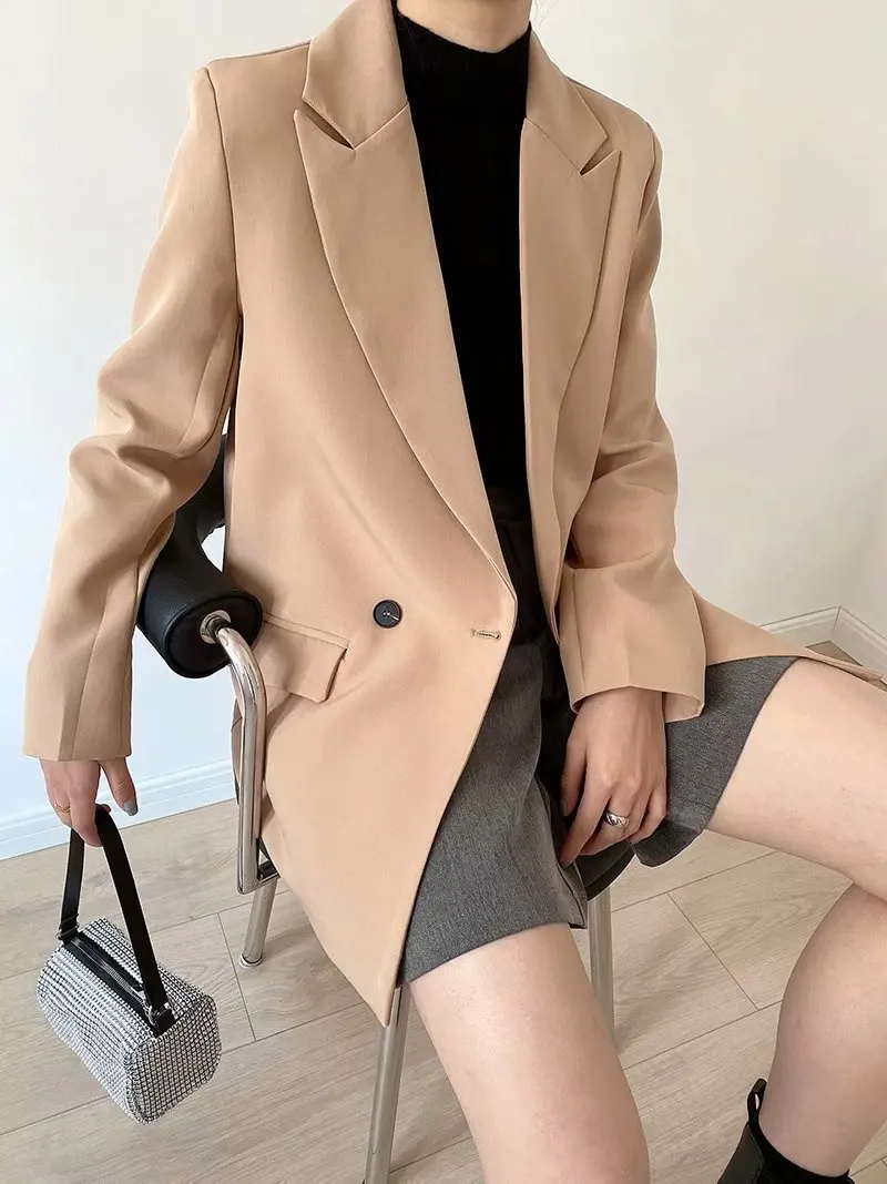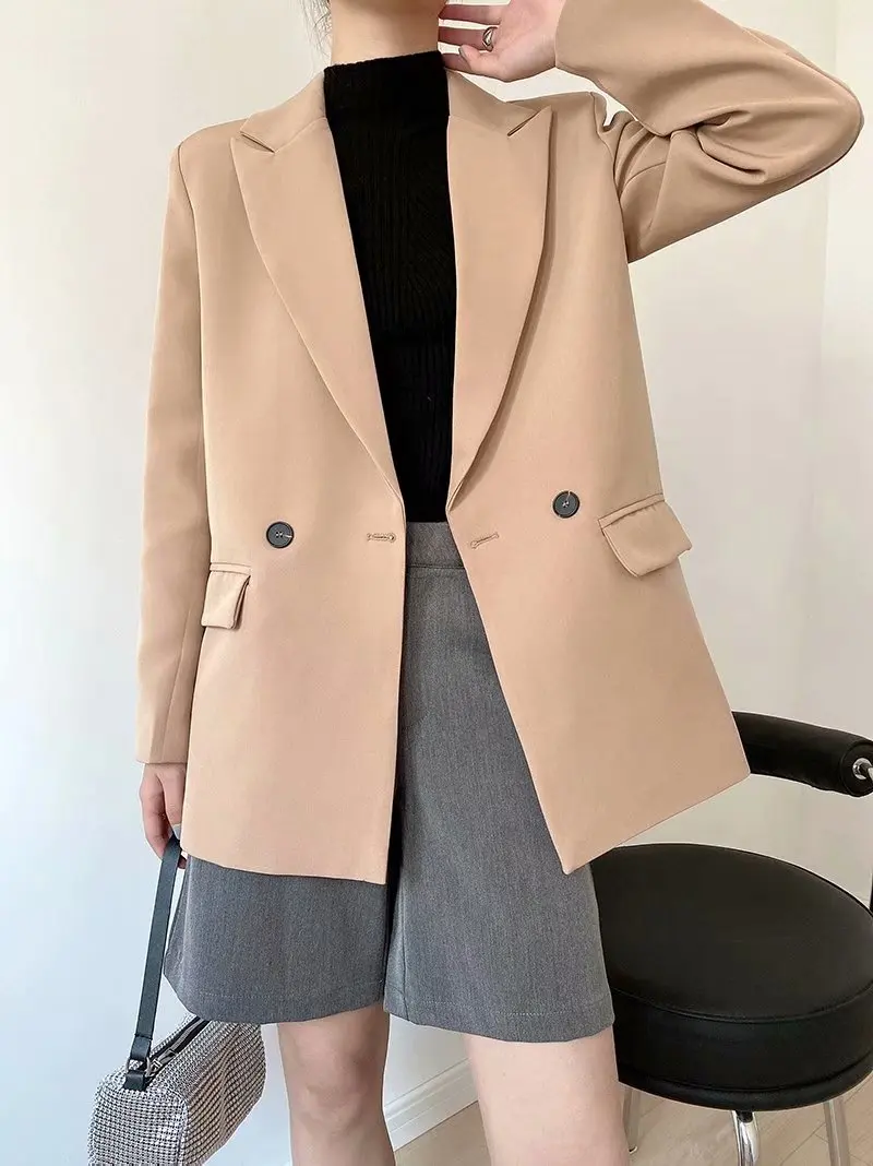 Женский блейзер на осень и зиму, повседневное однотонное двубортное декоративное пальто с карманами