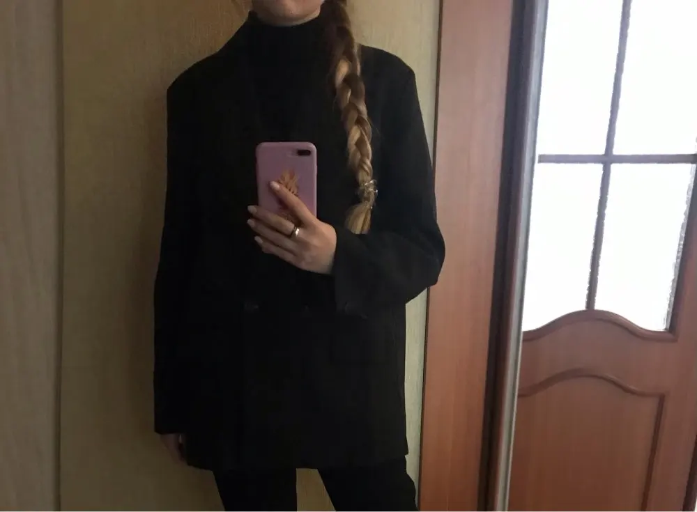 Классный пиджак,на рост 164 и вес 50 очень круто сел,немного оверсайз,как сейчас модно «с мужского плеча».Посылка в новогодние праздники пришла молнееносно за 2 недели