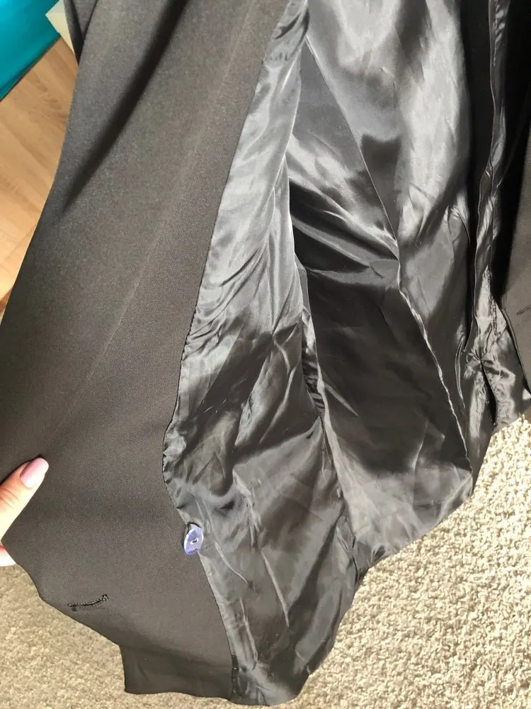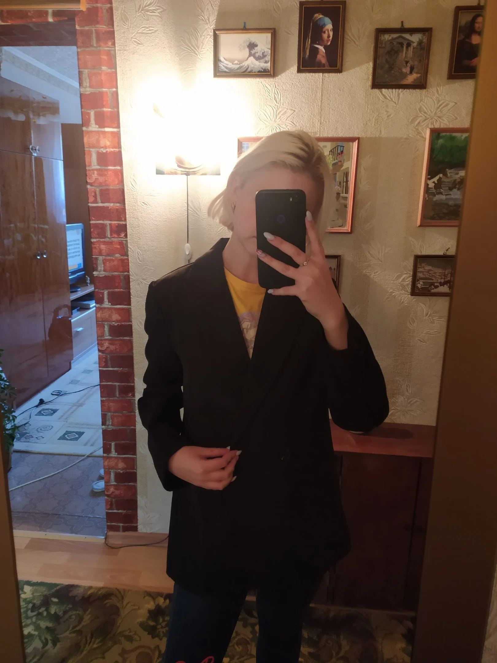 Крутой пиджак. М сел оверсайз на мой XS, но без перебора. Ткань не блестит, всё пришито ровно. Пиджак с подкладом и держит форму, не тряпочка. Я очень довольна, классный базовый пиджак, то что, нужно!