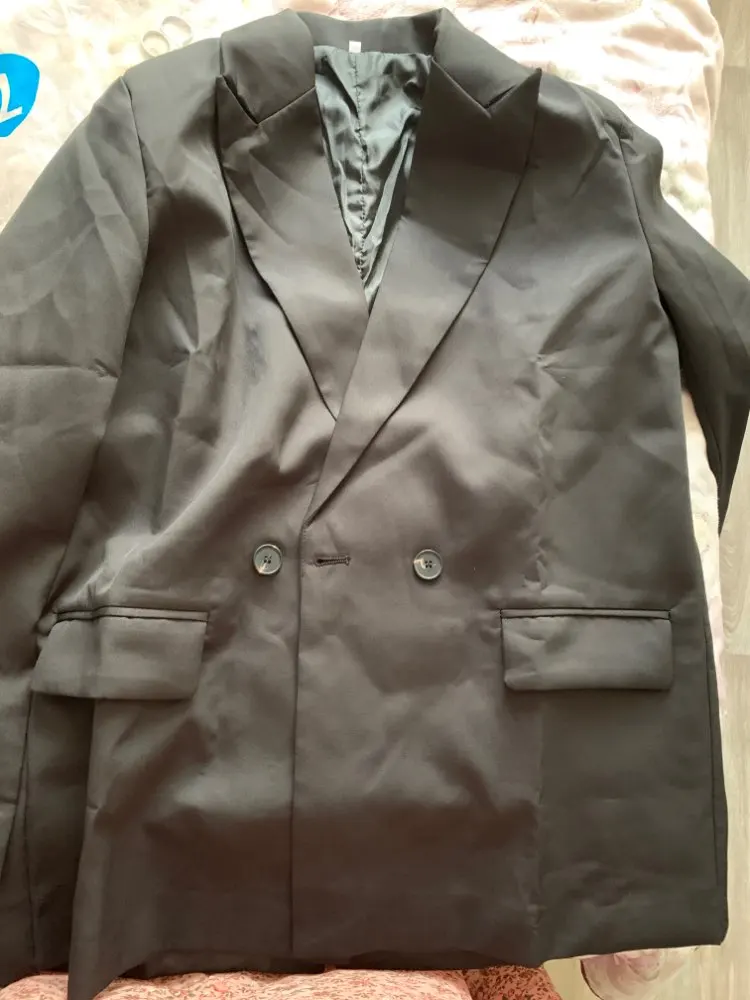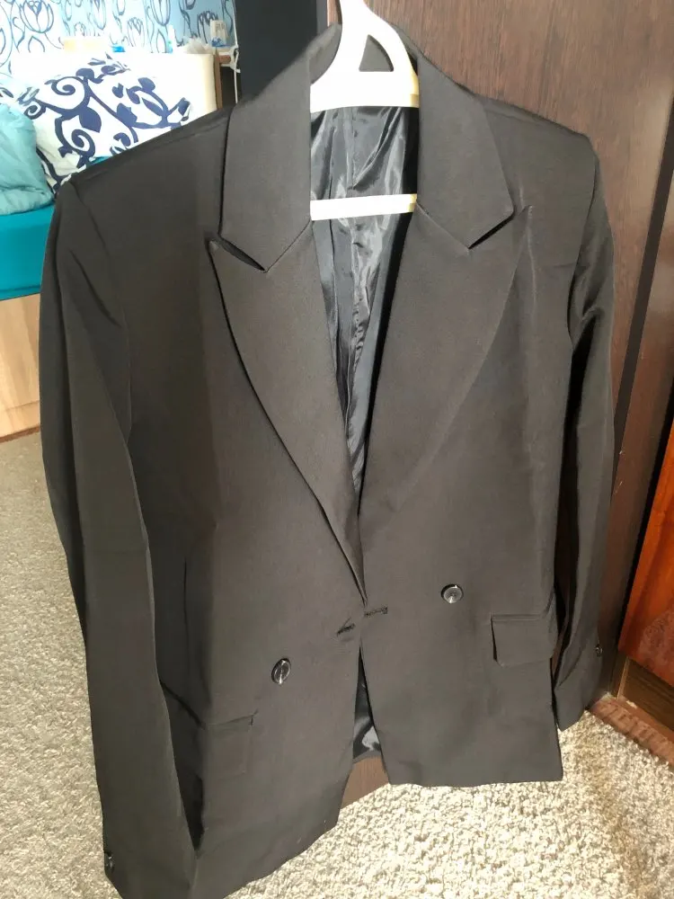 Просто потрясающий блейзер! Базовый, хороший оверсайз, качество как зара, у меня от туда много пиджаков. Я прям радуюсь! В жизни выглядит лучше, чем на фото. У меня М, взяла L - прекрасный, свободный, не тонкий. Самая быстрая посылка за 2 недели и 2 дня.