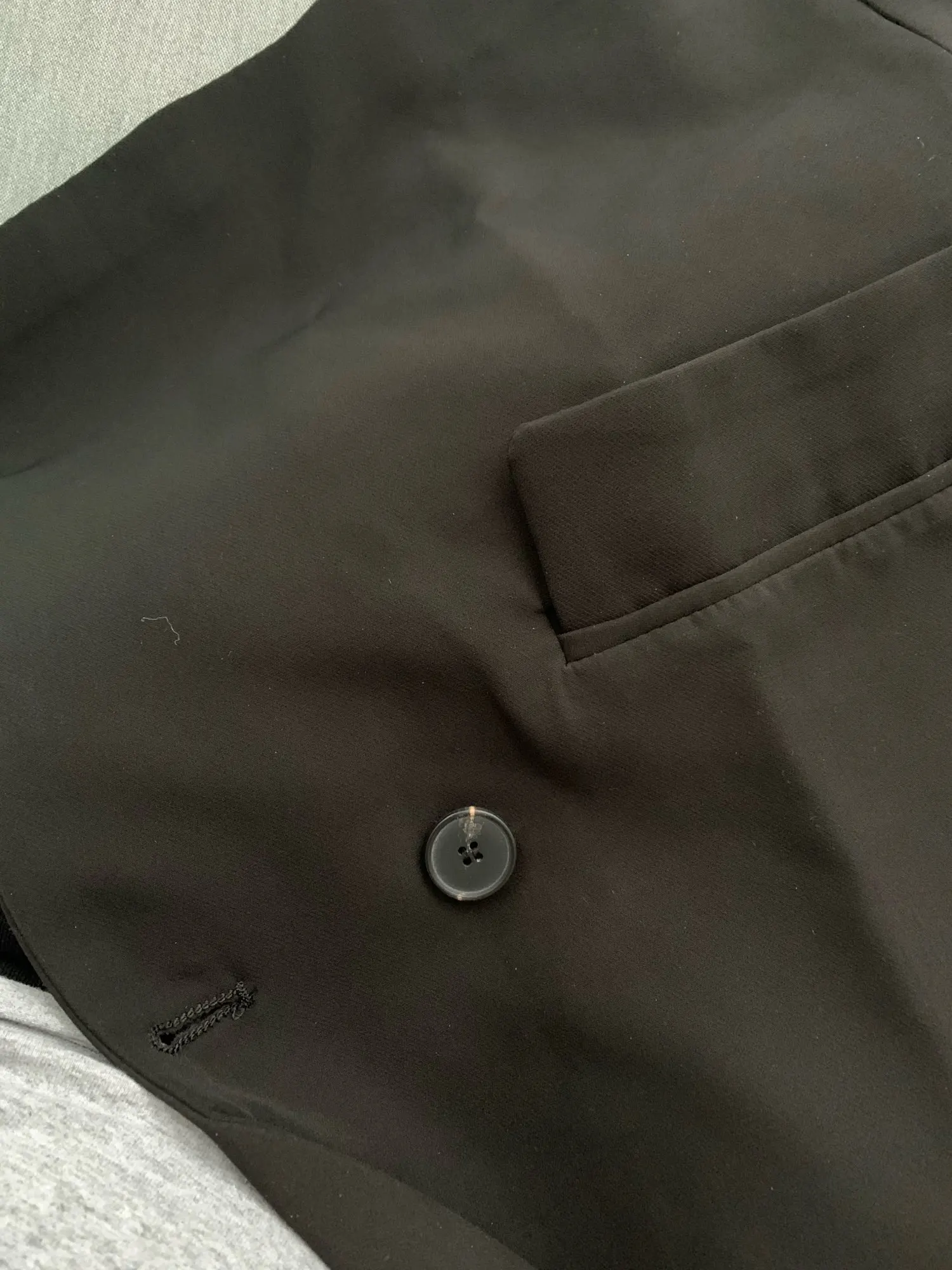 Очень хороший заказ, материал соответствует материалу блейзера. Я обычно ставил S, но я хотел получить эффект большого размера, поэтому я получил L, и это идеально. Маленькая плоская подошва, это накладные карманы. Кроме того, это произошло в течение 1 недели до Франции, я заказал его в течение периода продвижения, поэтому я думаю, что он играл в течение срока. Спереди есть поддельная кнопка, потому что настоящая кнопка сзади, это для эстетики, и это очень хорошо! Из-за яркости, на моей фотографии, у нас сложилось впечатление, что две передние кнопки не одного цвета, но нет никакой тревоги, они имеют тот же цвет (черный). Это легкий Блейзер, который можно носить в основном весной или осенью!✨