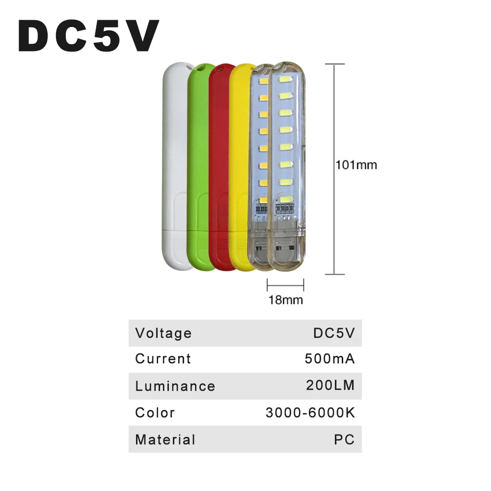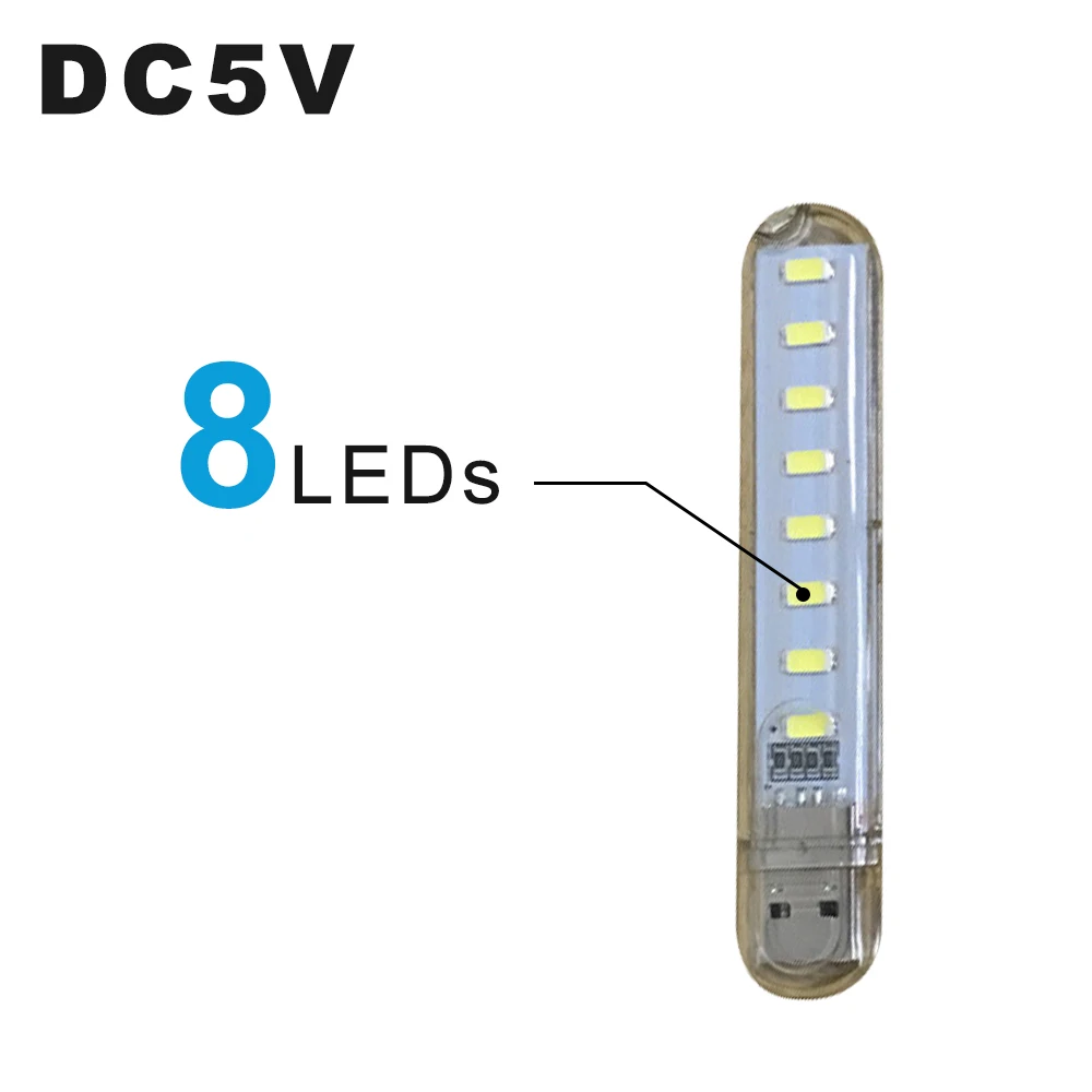 Переносной U-диск с USB-подсветкой, цветсветильник Настольная мини-лампа для чтения с питанием от 8 светодиодов, 4 Вт, 5 в постоянного тока