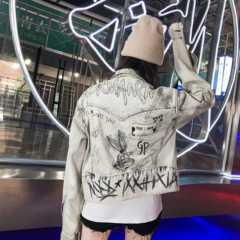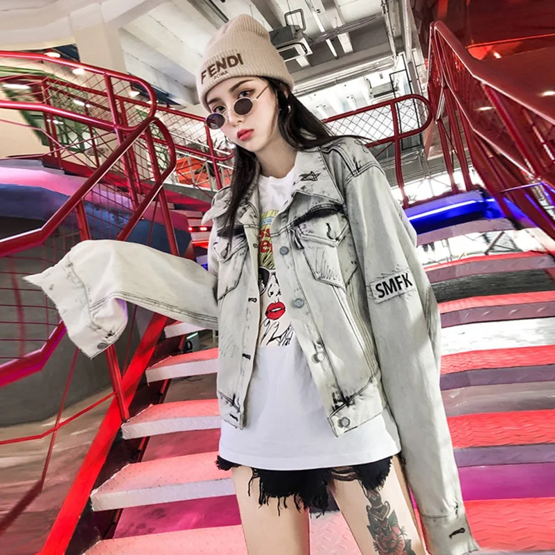 2021 модная новая джинсовая куртка с надписью граффити Бесплатная доставка
