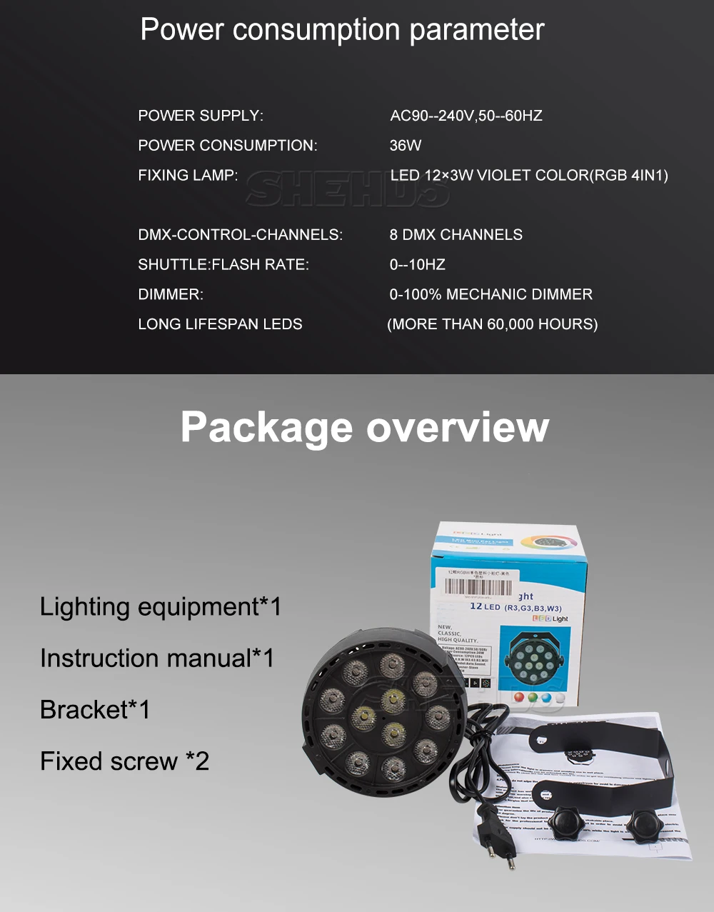 Сценический Светодиодный прожектор SHEHDS с номинальной мощностью 12x3 Вт, с DMX512, для дискотек, диджеев, проекторов, вечерние