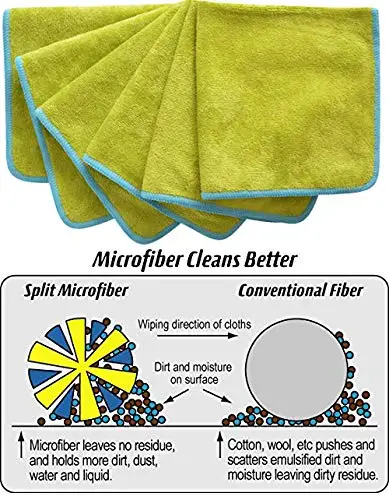 Микрофибра: 80% полиэстер, 20% полиамидОн имеет возможность улавливать и блокировать грязь, пыль, влагу и бактерии в волокна, очищая и высушивая применяемую поверхность.Микрофибра заряжена позитивно, притягивая грязь (отрицательно заряженная) как магнит.Волокна настолько малы, что они могут проникать в трещины и щели вместе с микроскопическими поверхностными порами большинства материалов.
