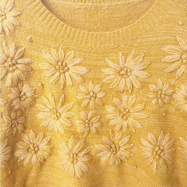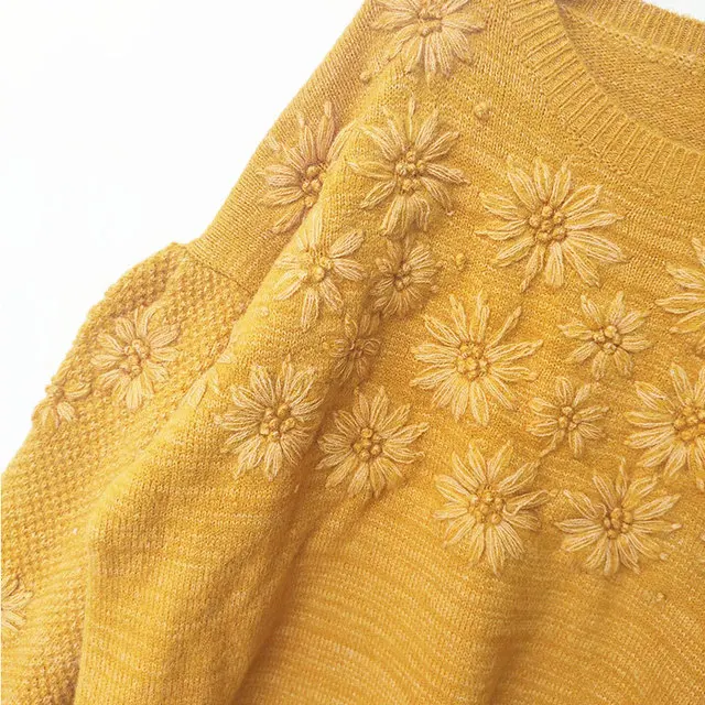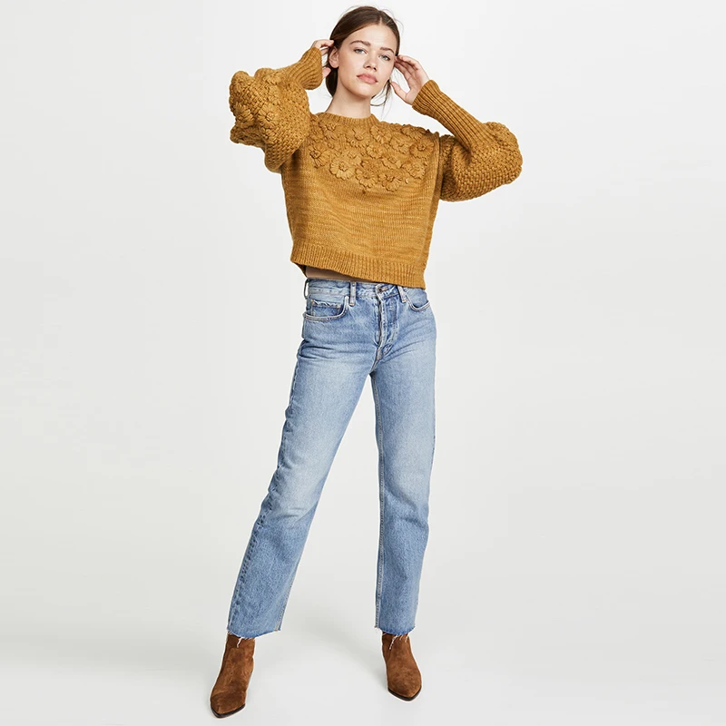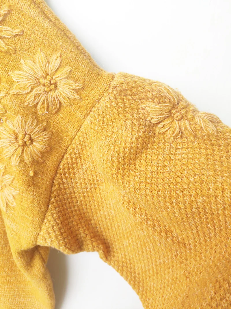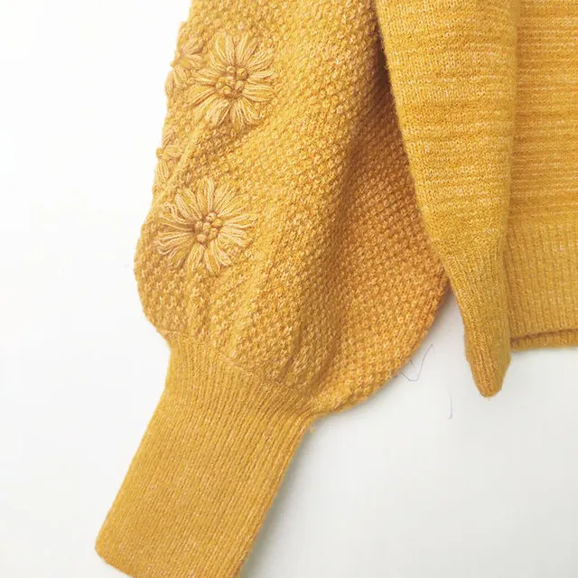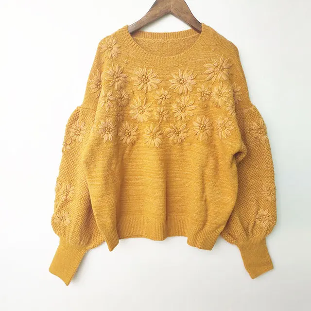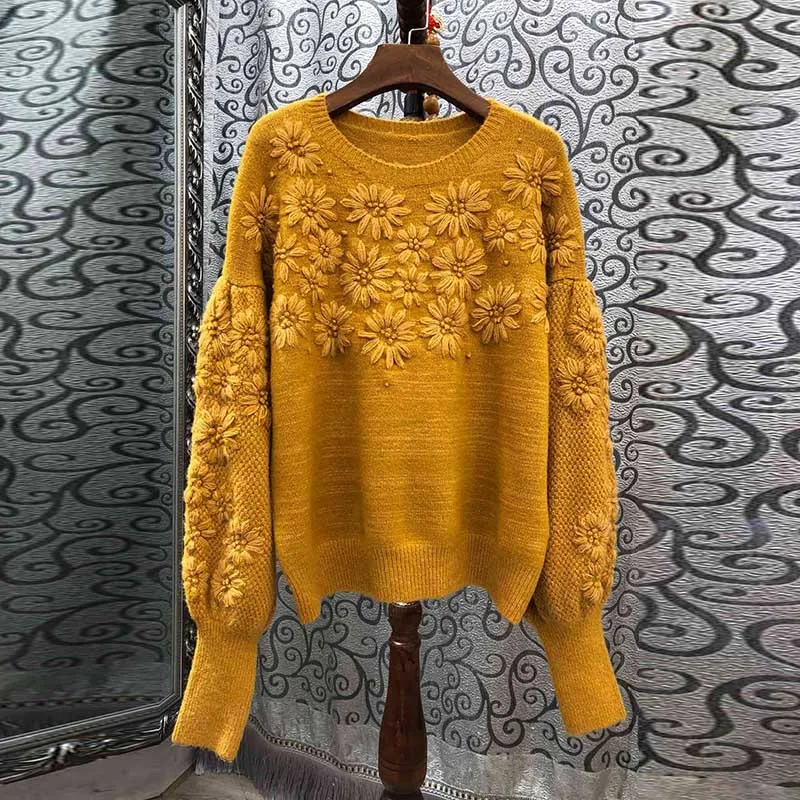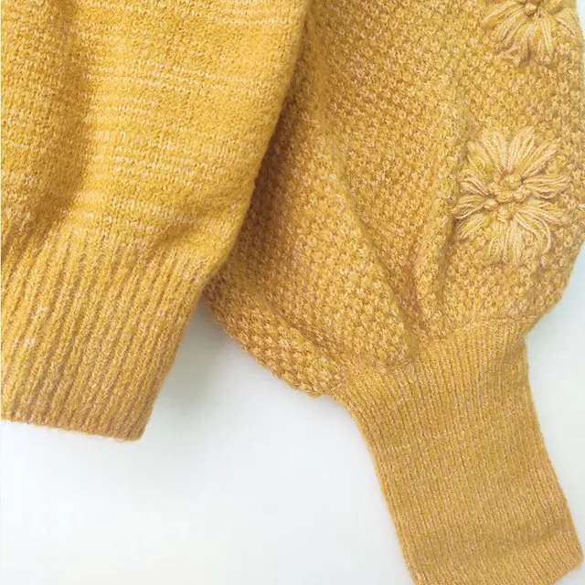 Осенне-зимний новый шерстяной свитер ручной работы с цветочным рисунком, Женский вязаный свитер с рукавами-фонариками