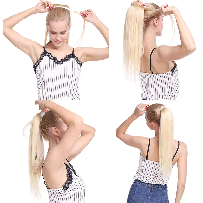 Если ваши волосы могут затягиваться обратно в небольшую конскую или пучок, это будет хорошо, потому что есть длинная прядь волос, которая может обернуться вокруг, чтобы она выглядела как ваш собственный конский хвост.