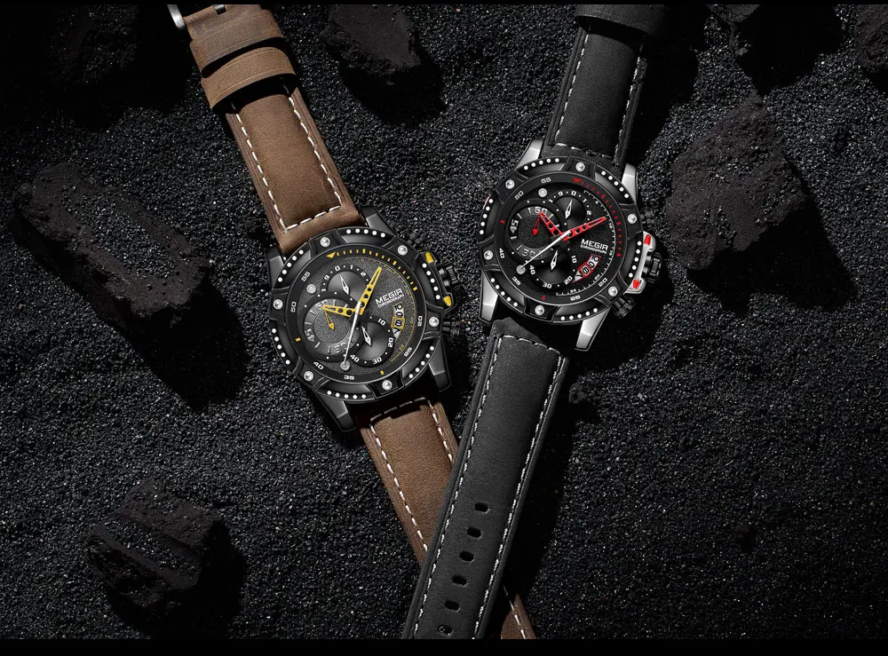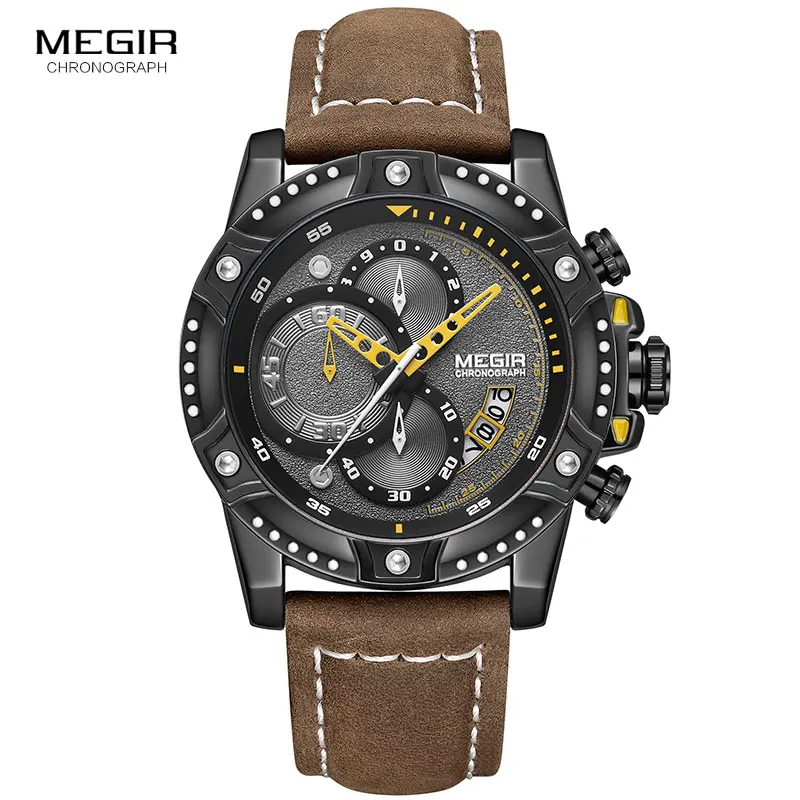 MEGIR мужские часы с хронографом лучший бренд с кожаным ремешком кварцевые часы мужские военные спортивные наручные часы мужские Relojes de Hombre 2130