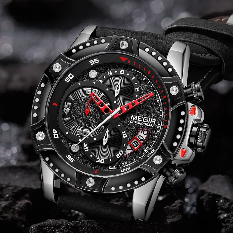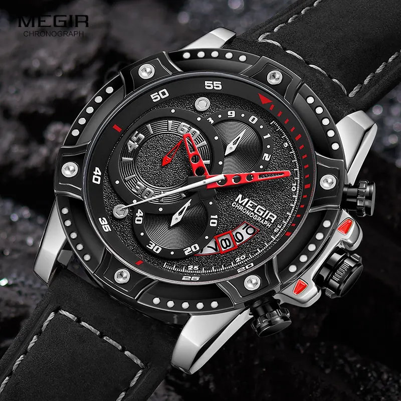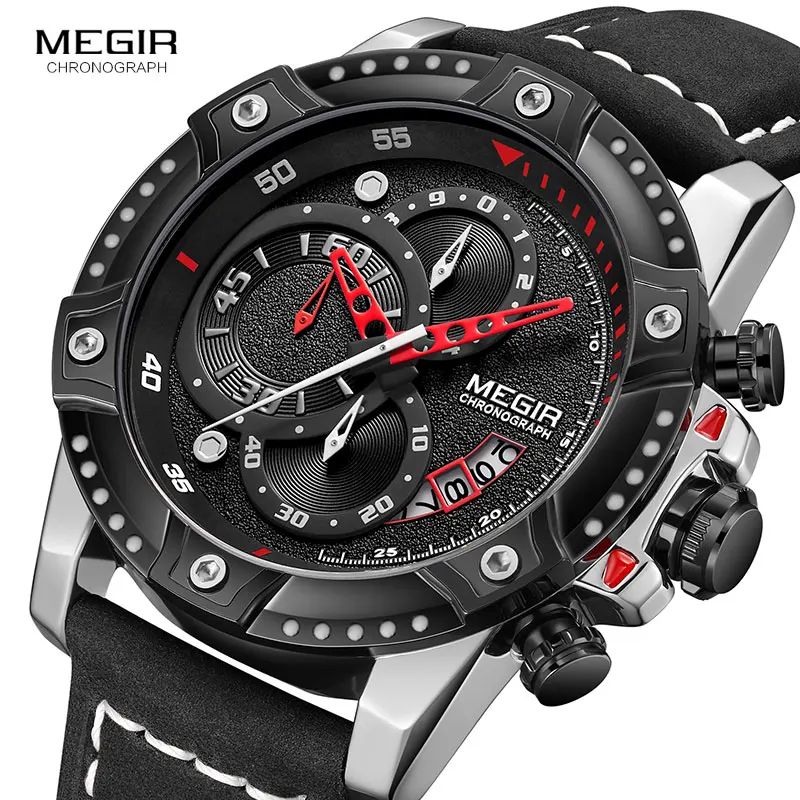MEGIR мужские часы с хронографом лучший бренд с кожаным ремешком кв...