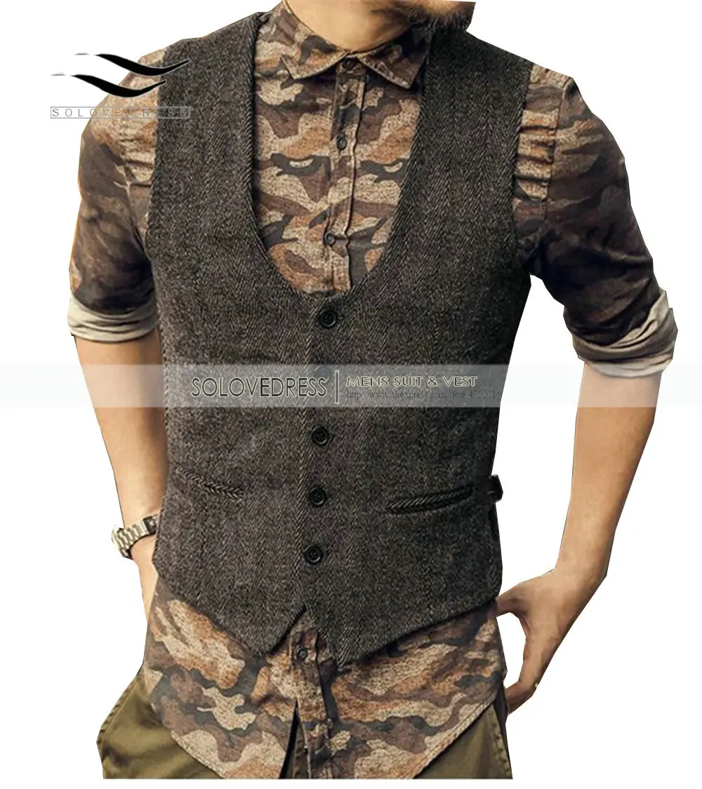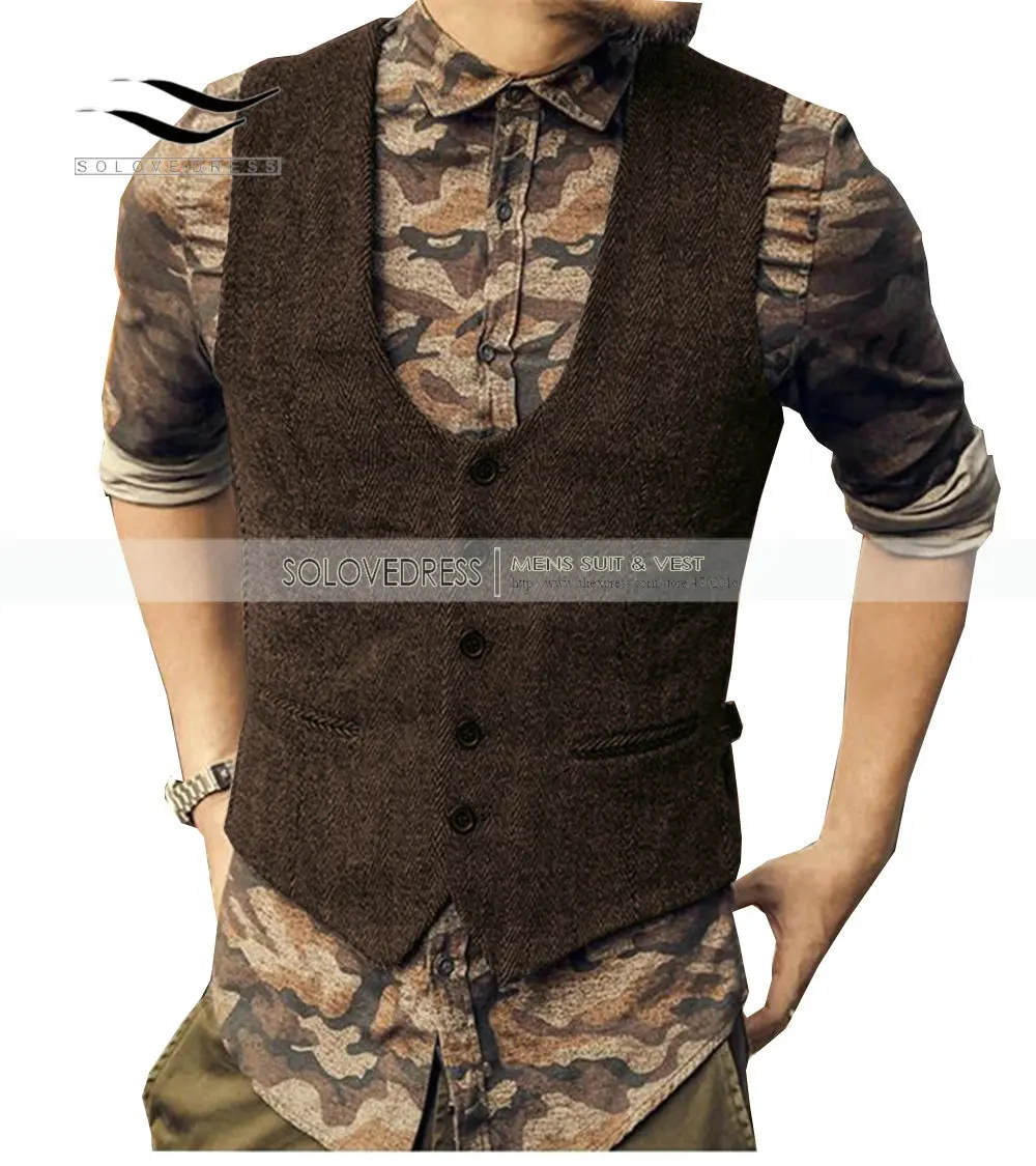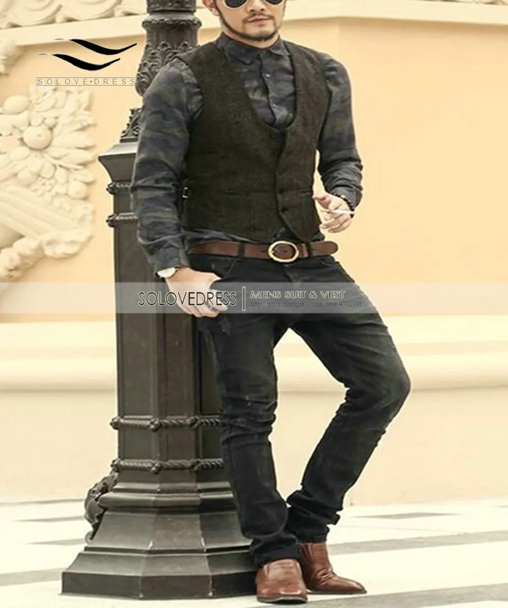 Мужской повседневный твидовый жилет, приталенный Приталенный жилет ...
