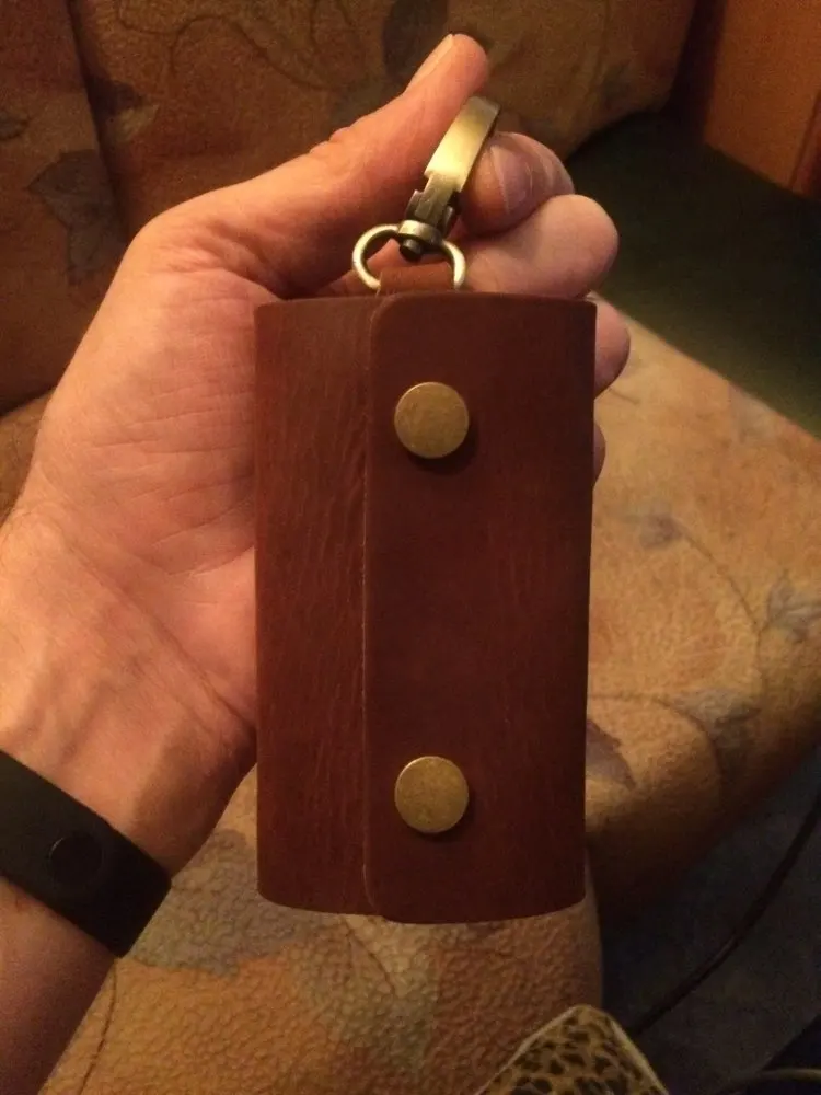 Заказ шёл в Беларусь месяц и три недели. Чехол для ключей выглядит очень качественно, на бумажном пакете в котором пришёл надпись - сделано вручную! Чехол понравился - кожа качественная плотная, фурнитура вся из латуни! Кнопки застегиваются с небольшим усилием и держат чехол закрытым очень прочно. Товар понравился внешне посмотрим как в эксплуатации. Надеюсь не подведет!!! Рекомендую этот товар и этого продавца!!