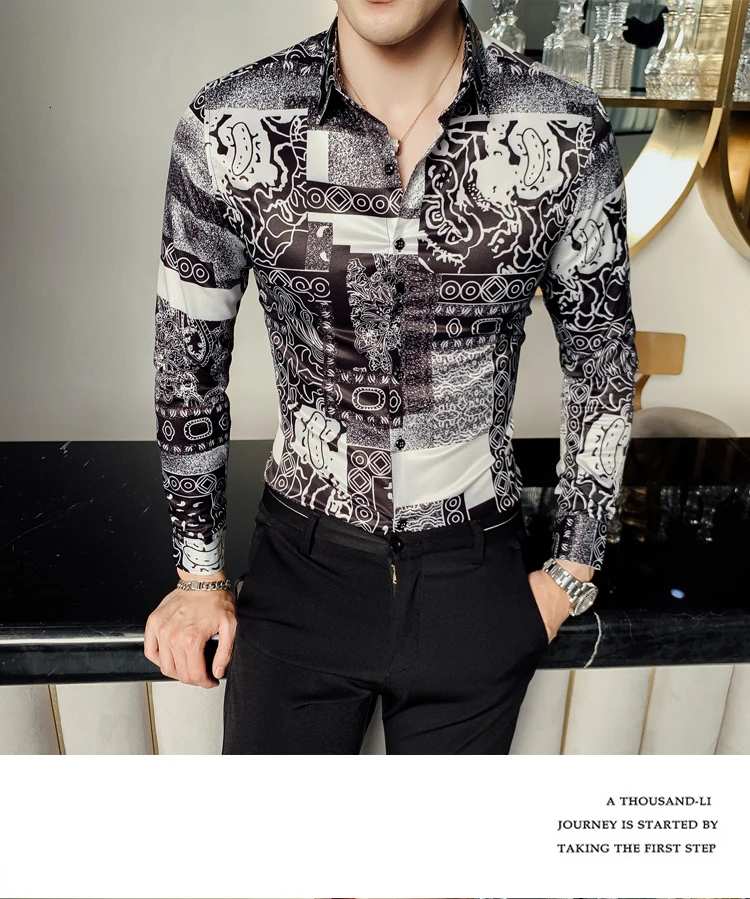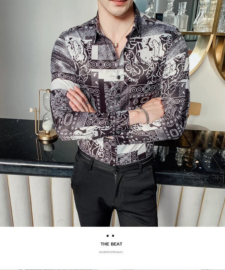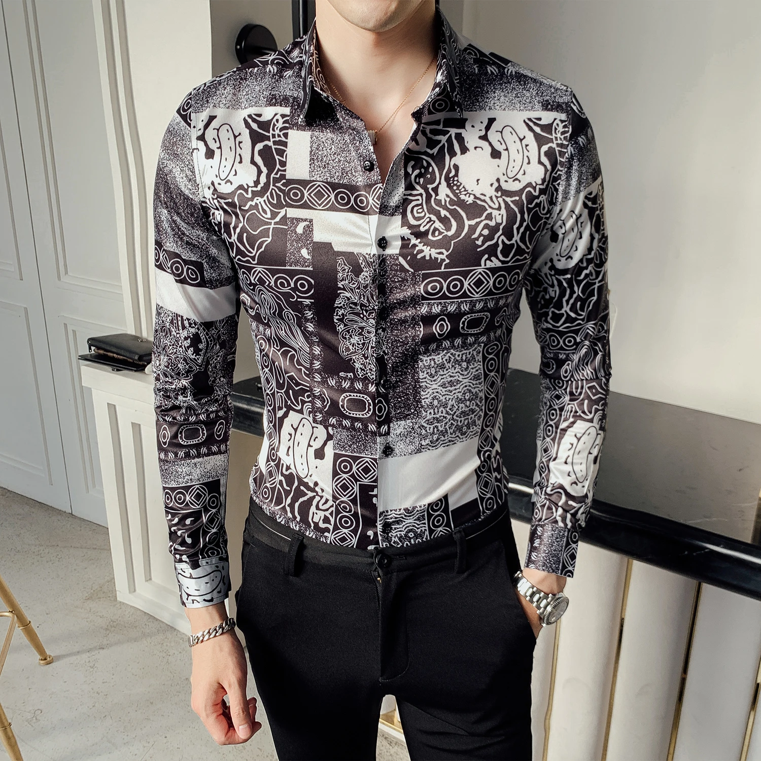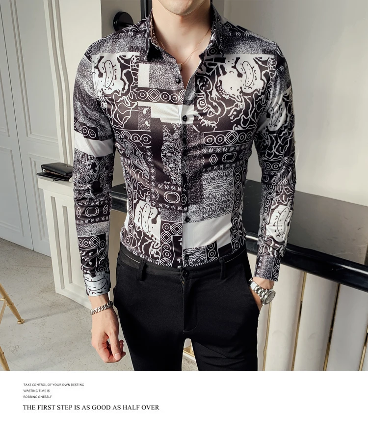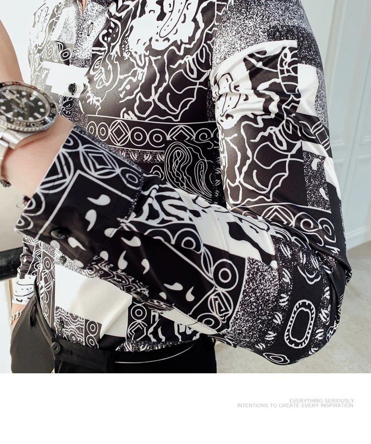 Мужская рубашка с цветочным принтом, Повседневная вечерняя рубашка в британском стиле под смокинг с длинным рукавом, одежда для ночного клуба, осень 2019