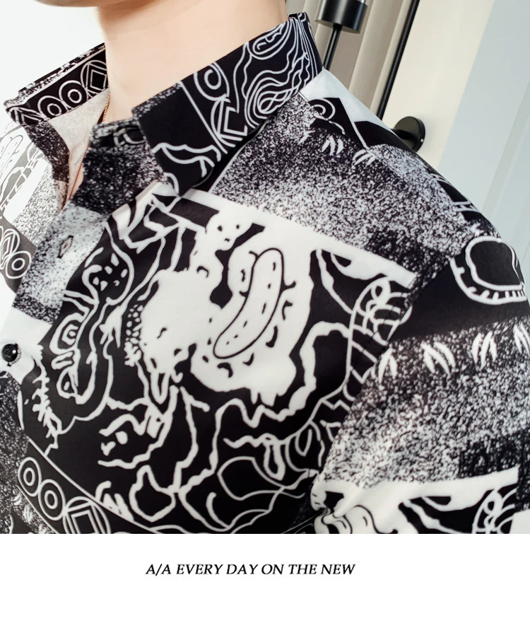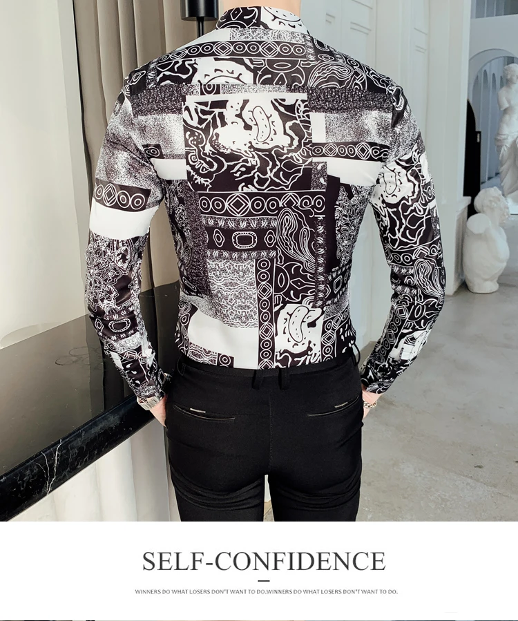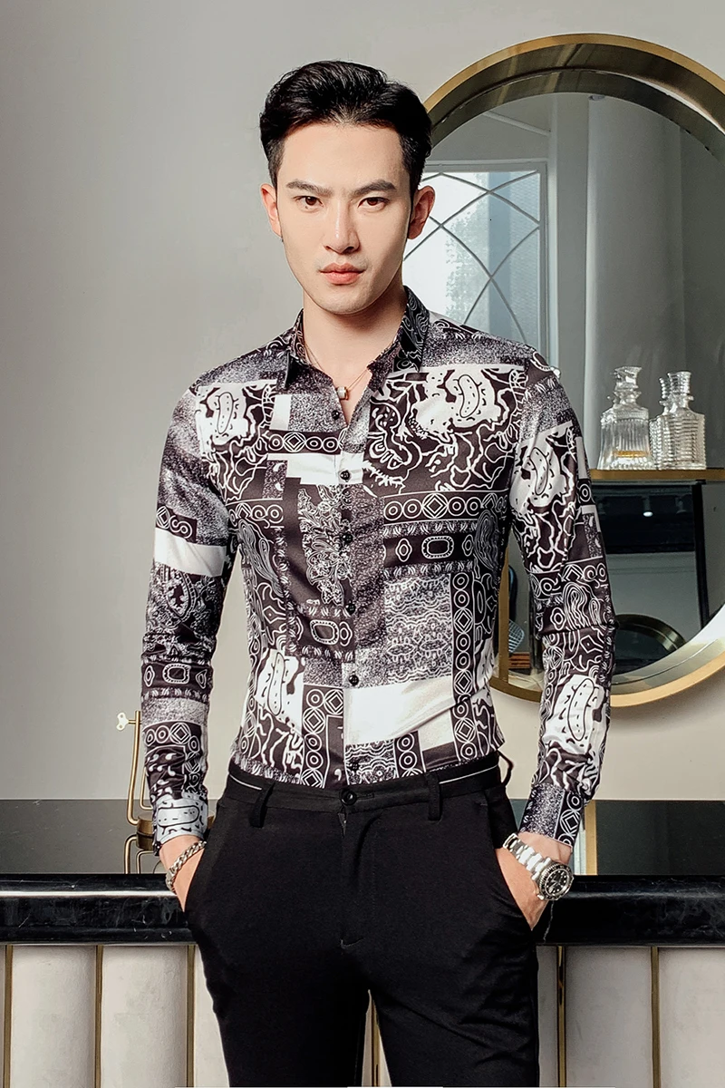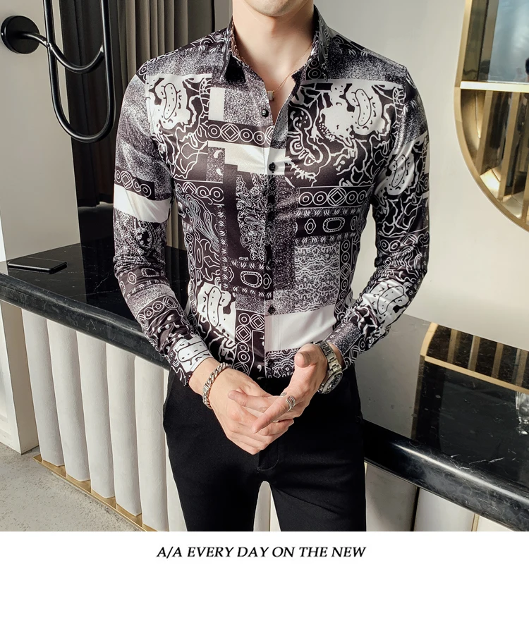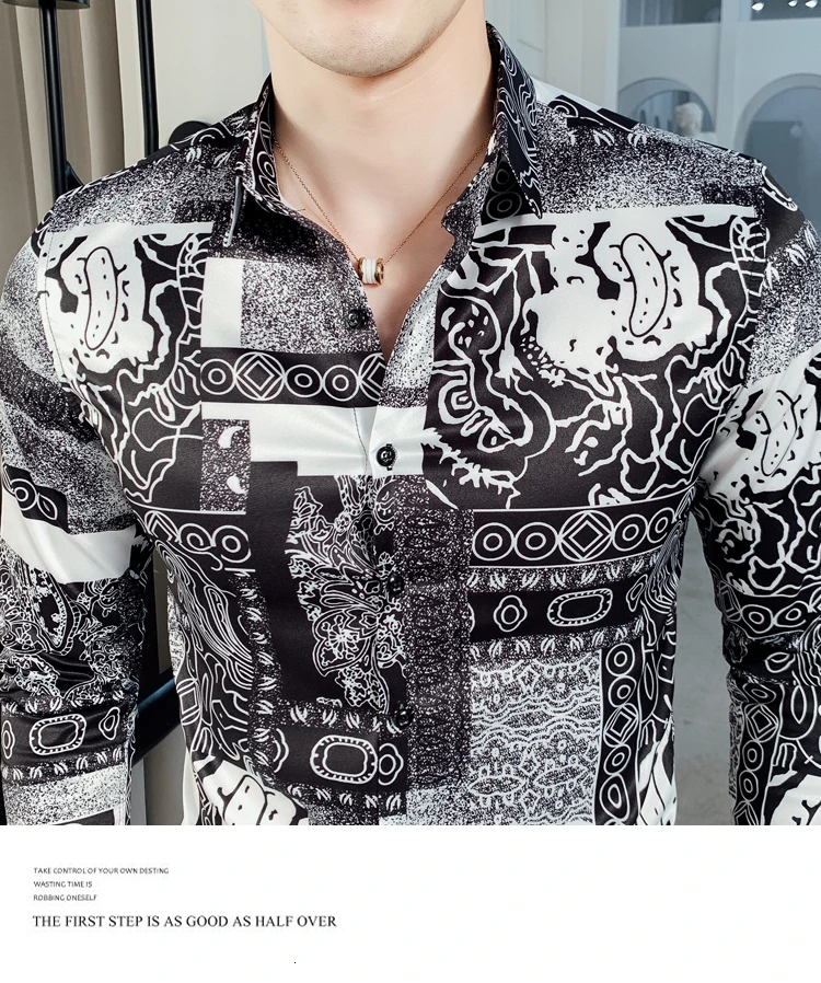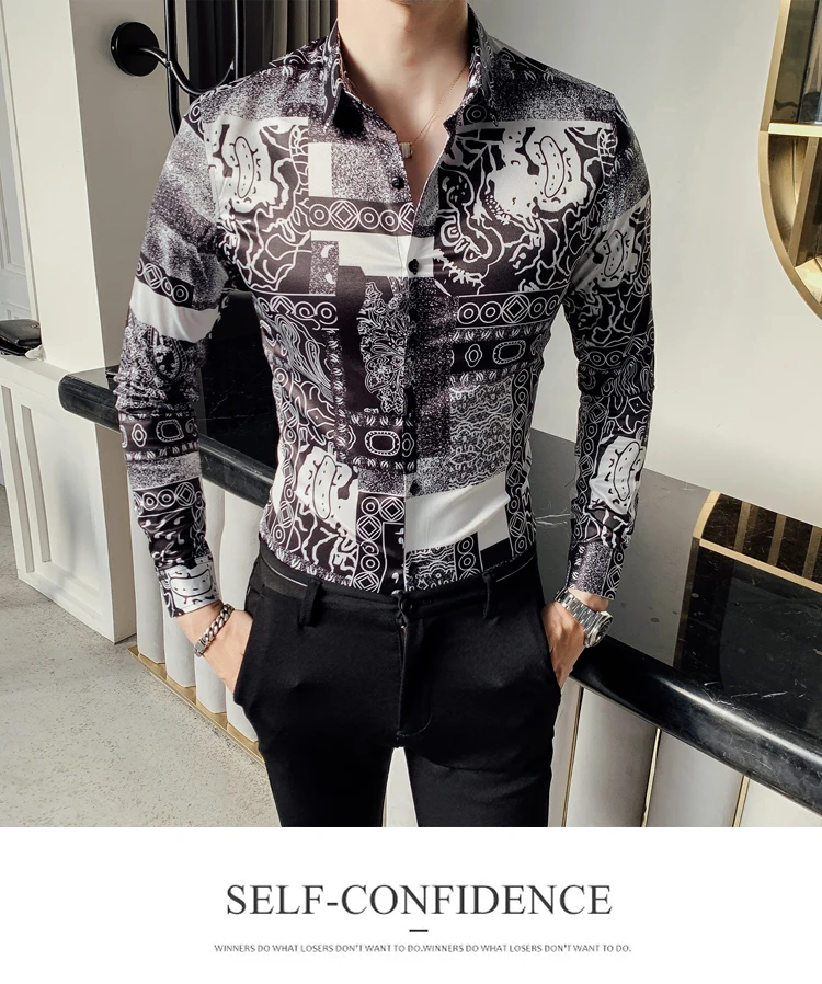 Мужская рубашка с цветочным принтом, Повседневная вечерняя рубашка в британском стиле под смокинг с длинным рукавом, одежда для ночного клуба, осень 2019