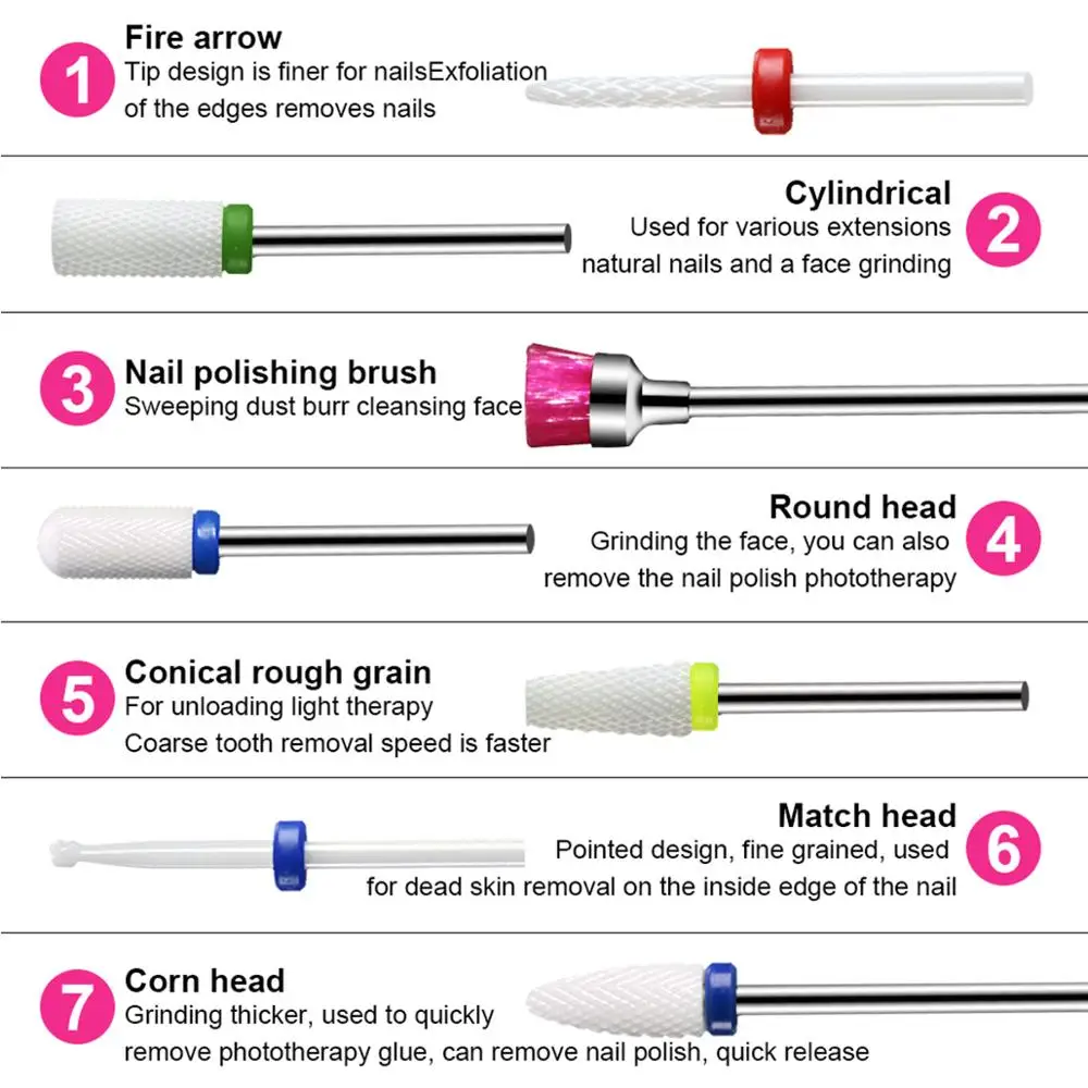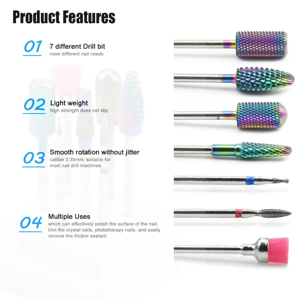 Набор фрез для маникюра, из карбида вольфрамакерамики, 7 шт.