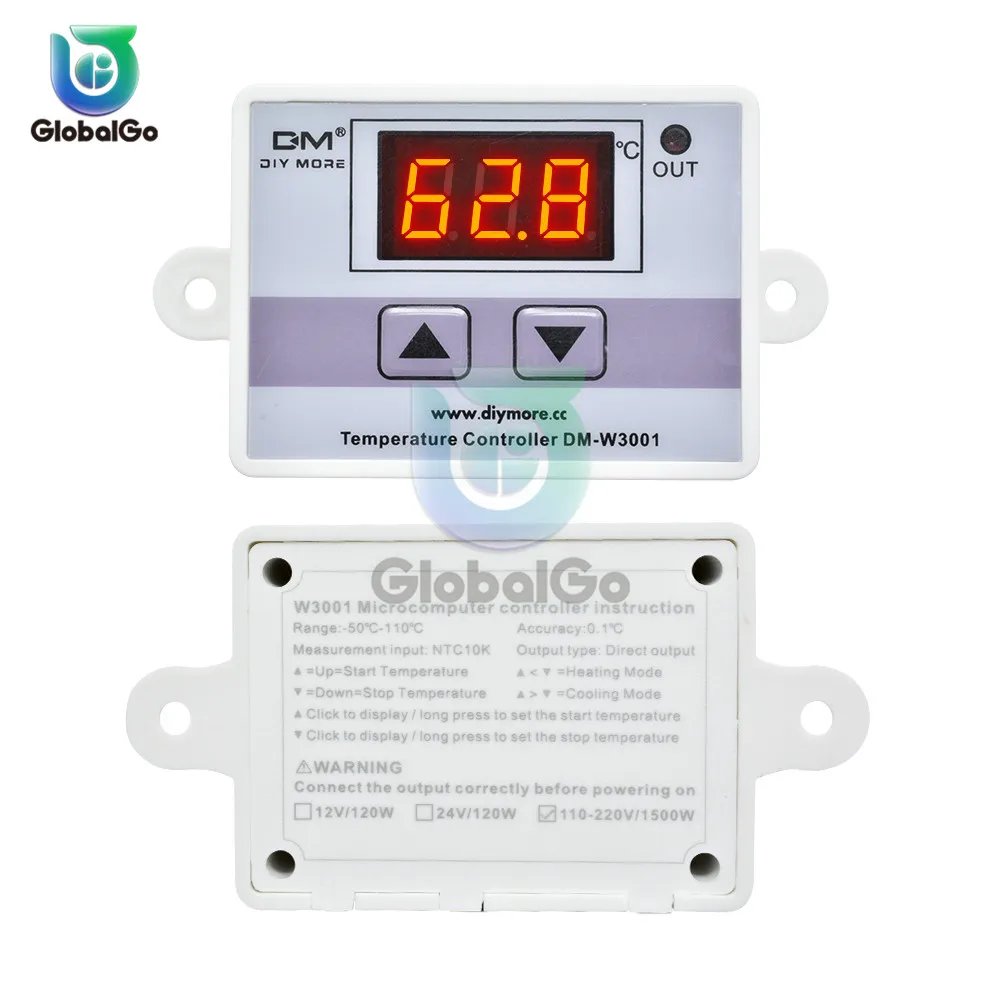 1 Умный светодиодный термостат W3001 со светодиодным цифровым дисплеем, регулятор температуры, AC110-220V 12 В постоянного тока, 24 В, релейный выход для дома, улицы, помещения