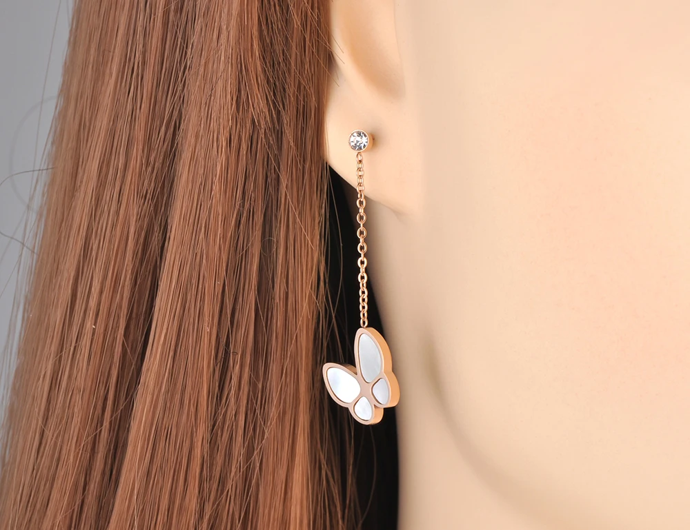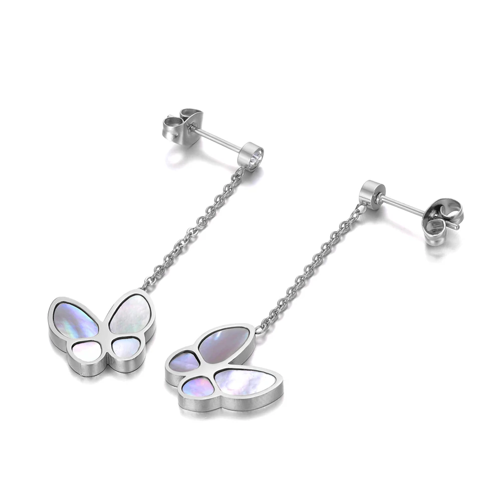 Модные женские серьги Lokaer из нержавеющей стали в виде ракушки, серьги-подвески с бабочками для девушек, с фианитами и кристаллами животных, серьги E19216